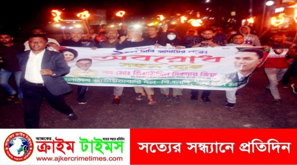সরকারের পদত্যাগ,নির্দলীয় নিরপেক্ষ সরকারের দাবী আদায়ে ও নির্বাচন কমিশন ঘোষিত একতরফা তফসিল প্রত্যাখান করা সহ অন্যায়ভাবে মির্থা মামলা দিয়ে আটক সকল নেতা কর্মীদের মুক্তি একদফা দাবীতে বাংলাদেশ জাতীয়তাবাদী দল বিএনপি ও সমমনা দলের ডাকা ৬ষ্ঠবারের মত বুধ ও বৃহস্পতিবার ৪৮ ঘন্টা অবরোধ সফল করার সমর্থনে নগরীতে রাতে মহানগর বিএনপির মশার্ল মিছিল সহ দিনভর জেলা স্বেচ্ছাসেবক দল, জেলা যুবদল, মহানগর শ্রমিকদল, মহানগর ছাত্রদল ও নগরীর ২৬ নং ওয়ার্ড বিএনপি বিক্ষিপ্ত পিকেটিং মিছিল করেছে।