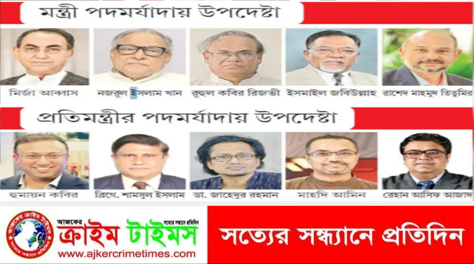 নিজস্ব প্রতিবেদক :: আব্বাস-নজরুল-রিজভীসহ প্রধানমন্ত্রীর ১০ উপদেষ্টা।