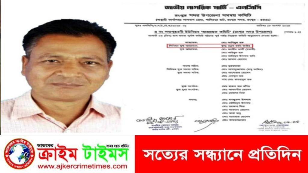 রংপুরে ইয়াবা ব্যবসার সাথে জড়িত থাকার অভিযোগে গ্রেপ্তার এবং কার্যক্রম নিষিদ্ধ আওয়ামী লীগের একজন উপজেলা সাংগঠনিক সম্পাদককে জাতীয় নাগরিক পাটি-এনসিপির একটি ইউনিয়নের যুগ্ম আহ্বায়ক করার ঘটনায় তোলপাড় শুরু হয়েছে সামাজিক যোগাযোগ মাধ্যমসহ রাজনৈতিক মহলে।