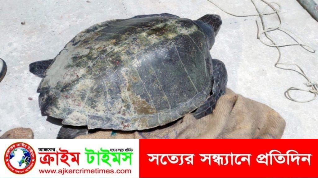 উদ্ধার হওয়া ৩৪ কেজির কচ্ছপ কীর্তনখোলায় অবমুক্ত