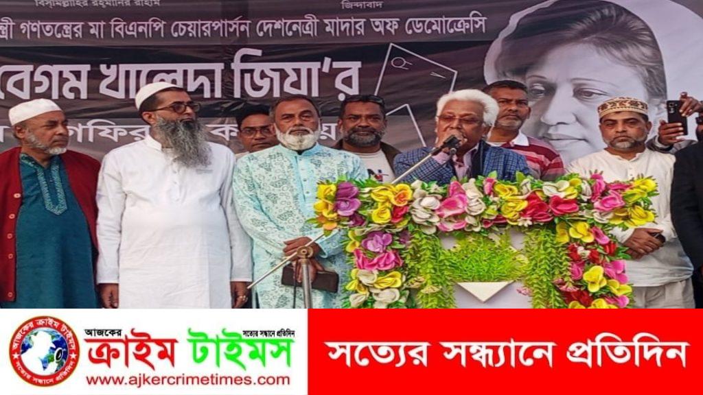 শনিবার (২৪ জানুয়ারি) আসর নামাজের পর উজিরপুর উপজেলার ওটরা ইউনিয়নের ওটরা মাধ্যমিক বিদ্যালয় মাঠে বাংলাদেশের তিনবারের সফল নারী প্রধানমন্ত্রী ও বিএনপির চেয়ারপারসন মরহুমা বেগম খালেদা জিয়ার রুহের মাগফিরাত কামনায় আয়োজিত দোয়া ও মোনাজাত অনুষ্ঠানে প্রধান অতিথির বক্তব্যে তিনি এসব কথা বলেন।