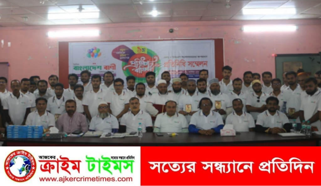 নিজস্ব প্রতিবেদক :: বরিশাল থেকে প্রকাশিত দৈনিক বাংলাদেশ বাণী পত্রিকার ১ম প্রতিষ্ঠাবার্ষিকী ও প্রতিনিধি সম্মেলন বৃহস্পতিবার (২৪ অক্টোবর ২০২৫) সকাল ৮টায় বরিশাল প্রেসক্লাব মিলনায়তনে অনুষ্ঠিত হয়েছে। “নতুন আঙ্গিকে, বস্তুনিষ্ঠ প্রকাশের অঙ্গীকার”—এই শ্লোগানকে সামনে রেখে আয়োজিত এ অনুষ্ঠানে জেলার বিভিন্ন উপজেলা প্রতিনিধি, সাংবাদিক ও বিশিষ্ট ব্যক্তিবর্গ অংশগ্রহণ করেন।