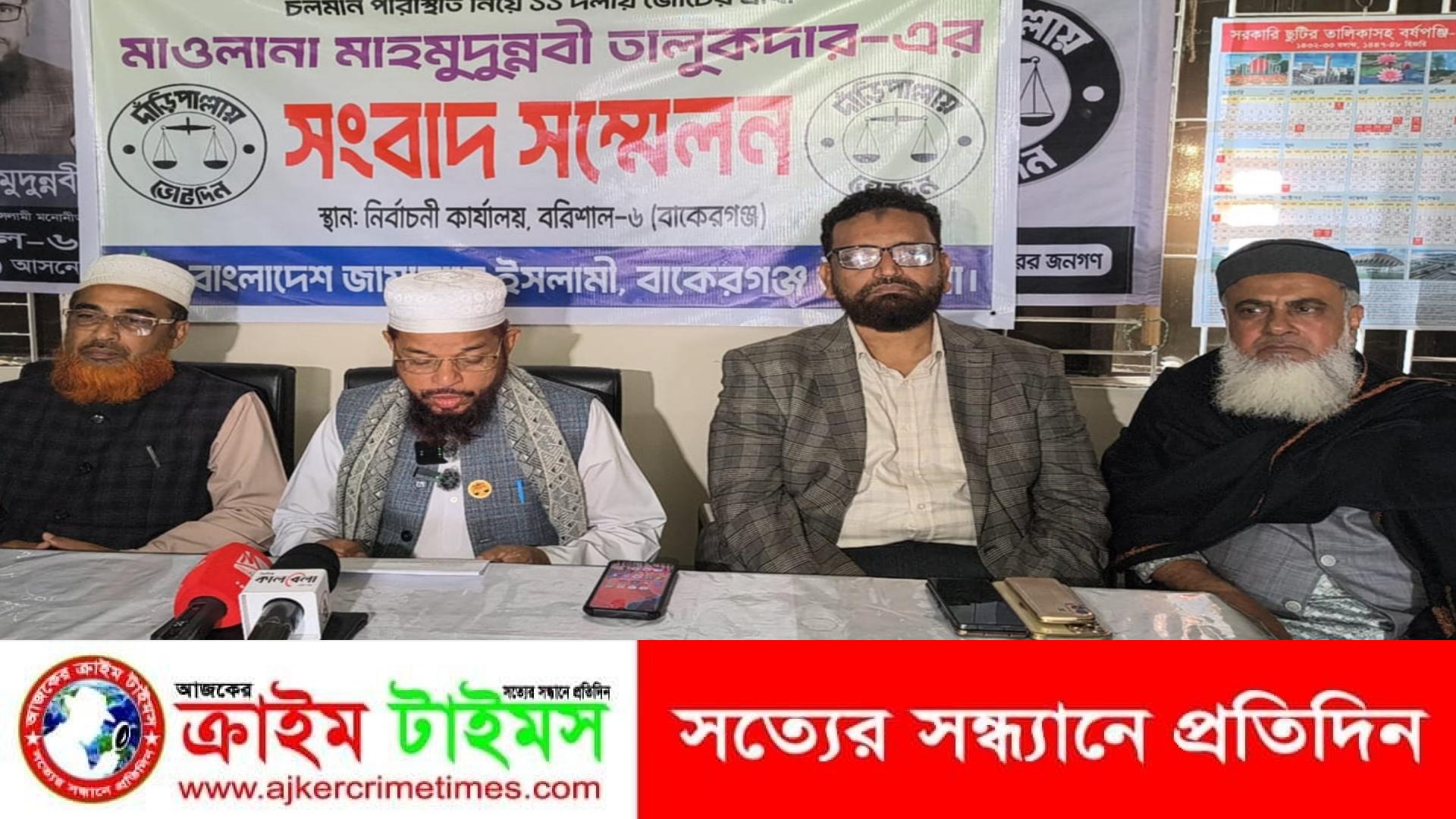 বাকেরগঞ্জ (বরিশাল) প্রতিনিধি :: বরিশালের-৬ (বাকেরগঞ্জ) আসনে সুষ্ঠু নির্বাচন নিয়ে সংশয় প্রকাশ করে সংবাদ সম্মেলন করেছেন ১১ দলীয় জোট প্রার্থী মাওলানা মাহমুদুন্নবী তালুকদার। তিনি প্রশাসনের বিরুদ্ধে উদাসীনতার ও অসহযোগীতার অভিযোগ তুলে এ সংবাদ সম্মেলন করেন।
