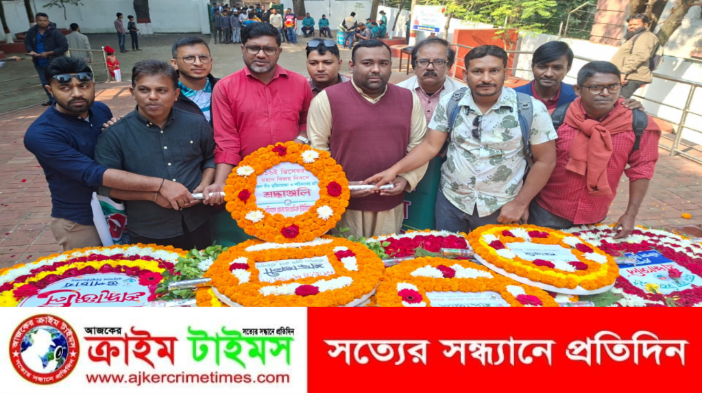 নিজস্ব প্রতিবেদক :: মহান বিজয় দিবস উপলক্ষে শহিদ স্মৃতি ফলকে শ্রদ্ধা নিবেদন করেছে বরিশাল জেলা সাংবাদিক ইউনিয়ন। ১৬ ডিসেম্বর মঙ্গলবার সকাল সাড়ে ১০টায় মুক্তিযুদ্ধে আত্মদানকারী সকল শহীদ ও মুক্তিযোদ্ধাদের প্রতি শ্রদ্ধা জানিয়ে পুস্পস্তবক অর্পণ করা হয়। এ সময় উপস্থিত ছিলেন বরিশাল জেলা সাংবাদিক ইউনিয়নের সভাপতি আযাদ আলাউদ্দীন, সাধারণ সম্পাদক হাফিজুর রহমান হীরা, সহ সভাপতি এম মোফাজ্জেল, নির্বাহী সদস্য বায়েজিদ পান্নু, প্রচার সম্পাদক দেওয়া মোহন সহ অন্যান্য সদস্যবৃন্দ। তাছাড়া আলোচনা সভা, দোয়া মোনাজাত সহ দিনব্যাপী নানা কর্মসূচীর মধ্য দিয়ে দিবস পালন করে জেলা সাংবাদিক ইউনিয়ন।