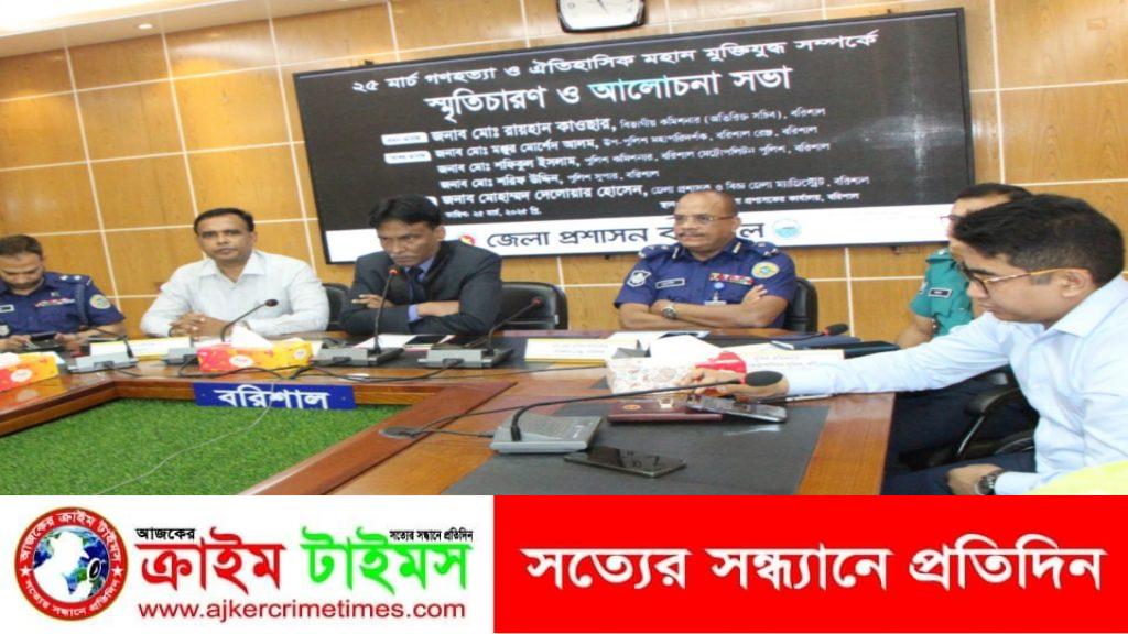 নিজস্ব প্রতিবেদক :: ২৫ মার্চ গণহত্যা ও ঐতিহাসিক মহান মুক্তিযুদ্ধ সম্পর্কে স্মৃতিচারণ ও আলোচনা সভা মঙ্গলবার সকালে জেলা প্রশাসকের সভাকক্ষে অনুষ্ঠিত হয়। জেলা প্রশাসনের আয়োজনে স্মৃতিচারণ ও আলোচনা সভায় প্রধান অতিথি হিসেবে উপস্থিত ছিলেন বিভাগীয় কমিশনার মো. রায়হান কাওছার।