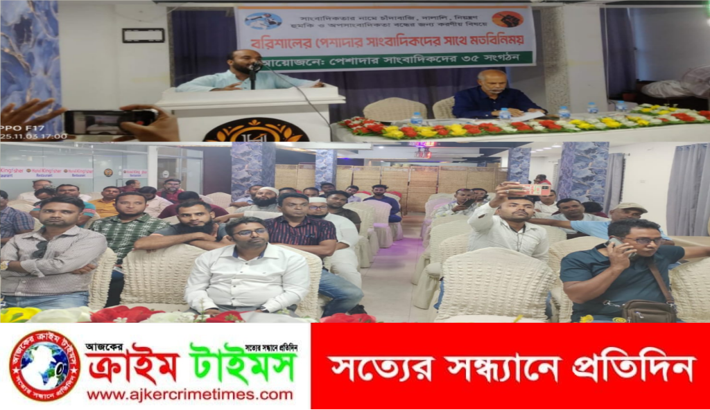 স্টাফ রিপোর্টার :: সাংবাদিকতার পবিত্র পেশার নামে দালালি, চাঁদাবাজি, অপসাংবাদিকতা প্রতিরোধে ঐক্যবদ্ধ হয়েছেন বরিশালের পেশাদার সাংবাদিকরা। সোমবার (৩ নভেম্বর ২০২৫) বরিশাল শহরের হোটেল কিংফিশারে আয়োজিত এক জরুরি মতবিনিময় সভায় সাংবাদিকতার নামে অনৈতিক কর্মকাণ্ডের তীব্র প্রতিবাদ জানানো হয়।