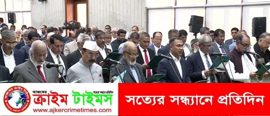 শপথ নিচ্ছেন তারেক রহমানসহ বিএনপির সংসদ সদস্যরা।