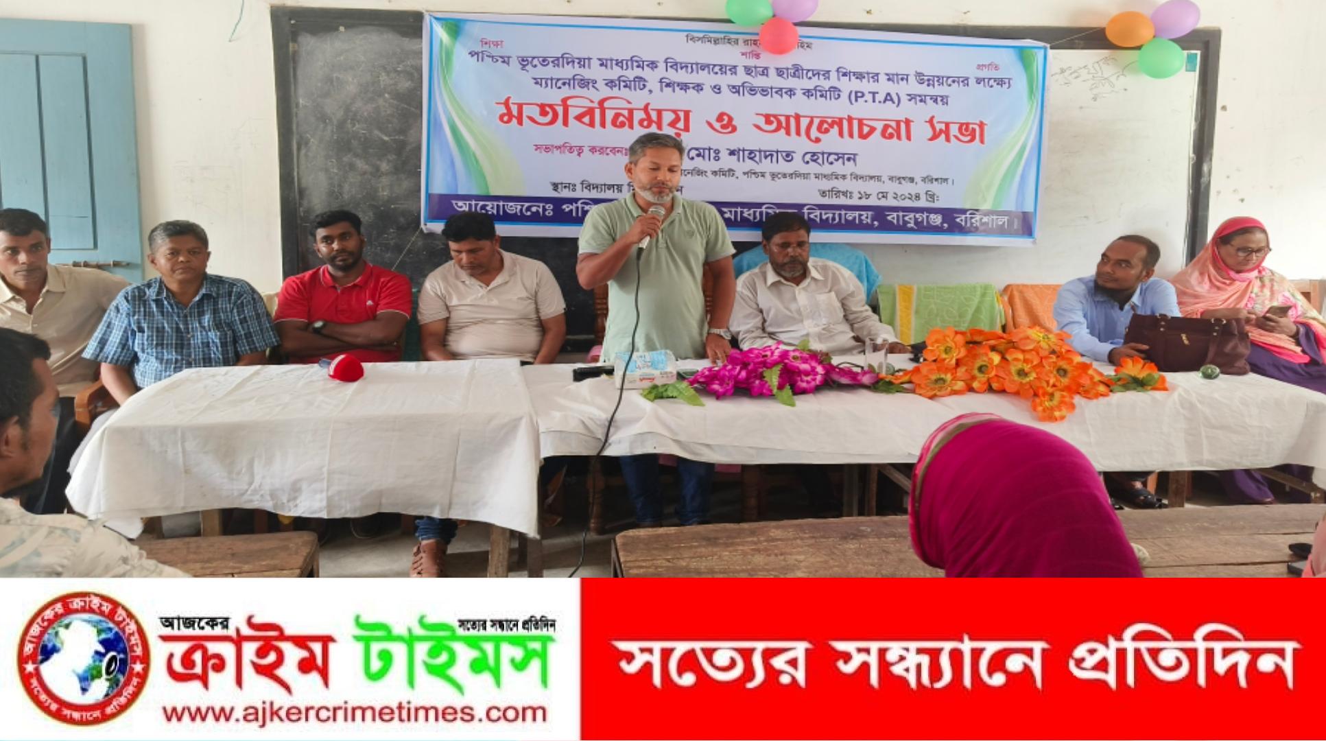 বাবুগঞ্জ (বরিশাল) প্রতিনিধি :: বরিশালের বাবুগঞ্জ উপজেলার কেদারপুর ইউনিয়নের ঐতিহ্যবাহী শিক্ষা প্রতিষ্ঠান পশ্চিম ভূতেরদিয়া মাধ্যমিক বিদ্যালয়ের ছাত্র ছাত্রীদের শিক্ষার মান উন্নয়নের লক্ষ্যে ম্যানেজিং কমিটি, শিক্ষক ও অভীভাবকদের সমন্বয়ে অভিভাবক সমাবেশ ও মতবিনিময় অনুষ্ঠিত হয়েছে।