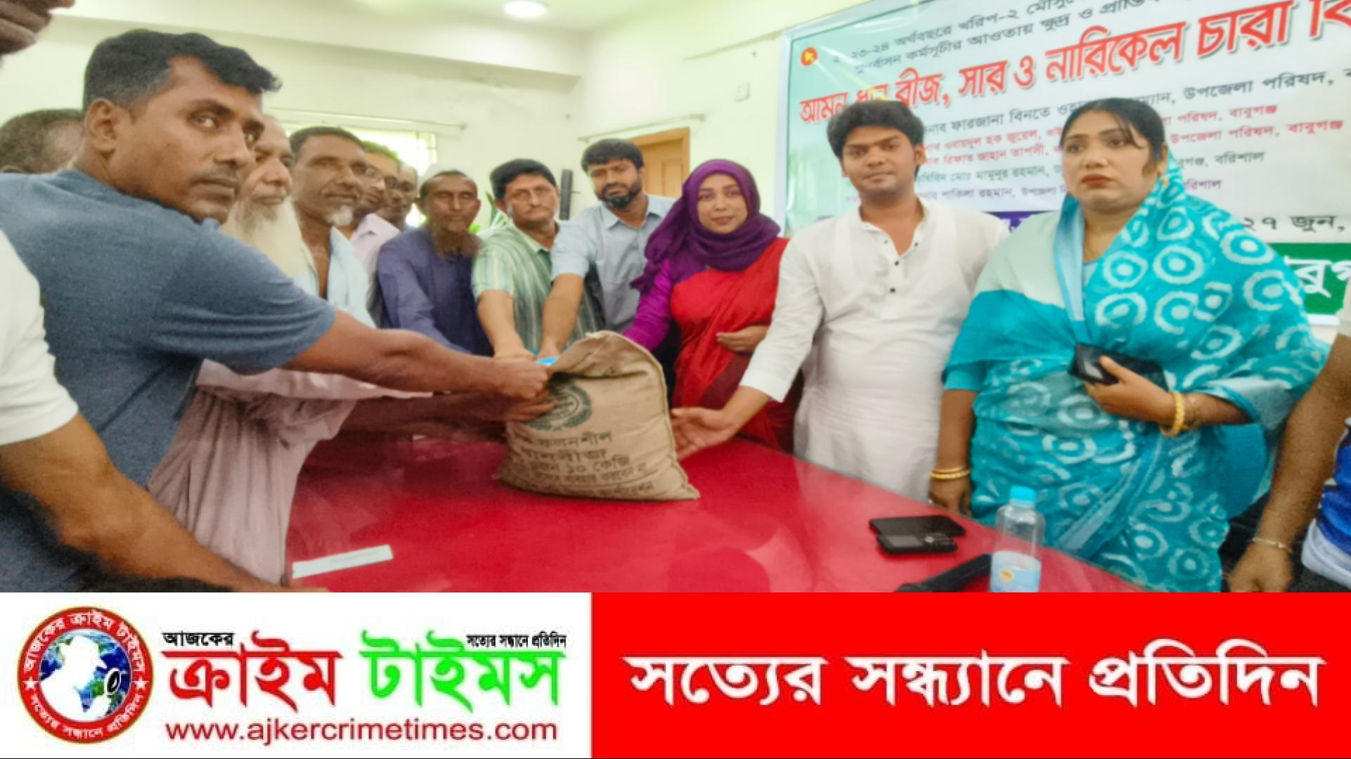 বাবুগঞ্জে কৃষকদের মাঝে আমন ধানের বীর, সার ও নারিকেল চারা বিতরণ