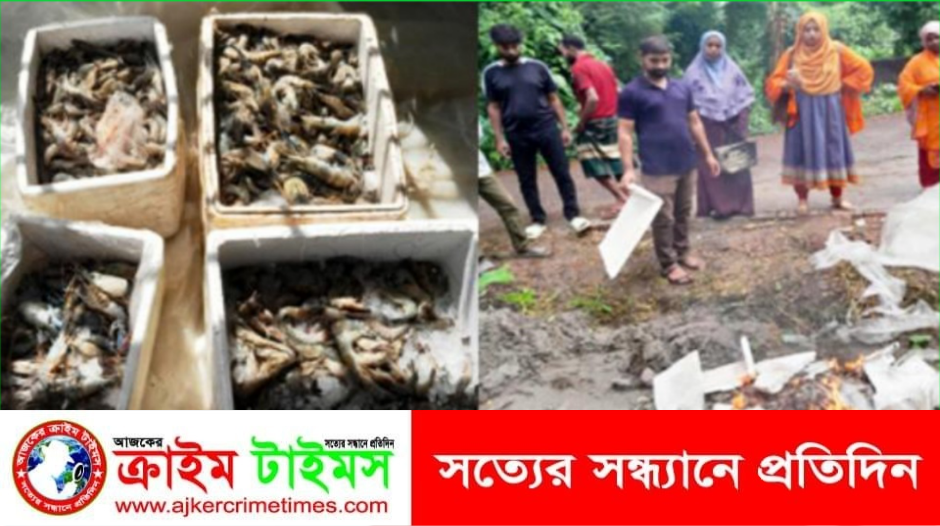 বরিশালের বানারীপাড়ায় বন্দর বাজারে অভিযান চালিয়ে প্রায় ৬০ কেজি জেলি মিশ্রিত চিংড়ি মাছ জব্দ করে পুড়িয়ে ফেলা হয়েছে।