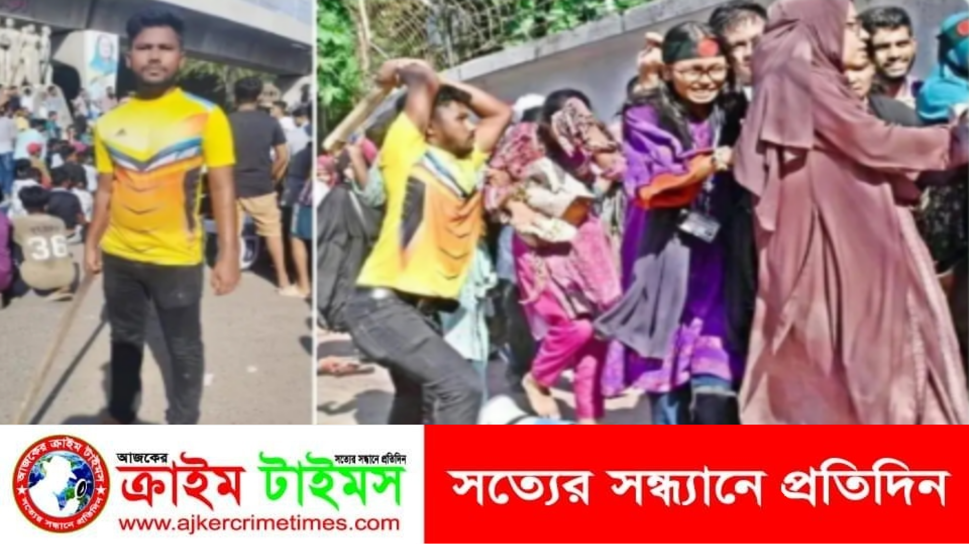 ঢাকা বিশ্ববিদ্যালয়ে কোটা সংস্কার দাবিতে আন্দোলনকারীদের সঙ্গে ছাত্রলীগ নেতাকর্মীদের সংঘর্ষে আন্দোলনরত ছাত্রীদের ওপর লাঠিহাতে আক্রমণ করছেন এক ছাত্রলীগ কর্মী। এমন একটি ছবি ভাইরাল হয়েছে। হামলাকারী ওই ছাত্রলীগ কর্মী পটুয়াখালীর কুয়াকাটার বাসিন্দা।