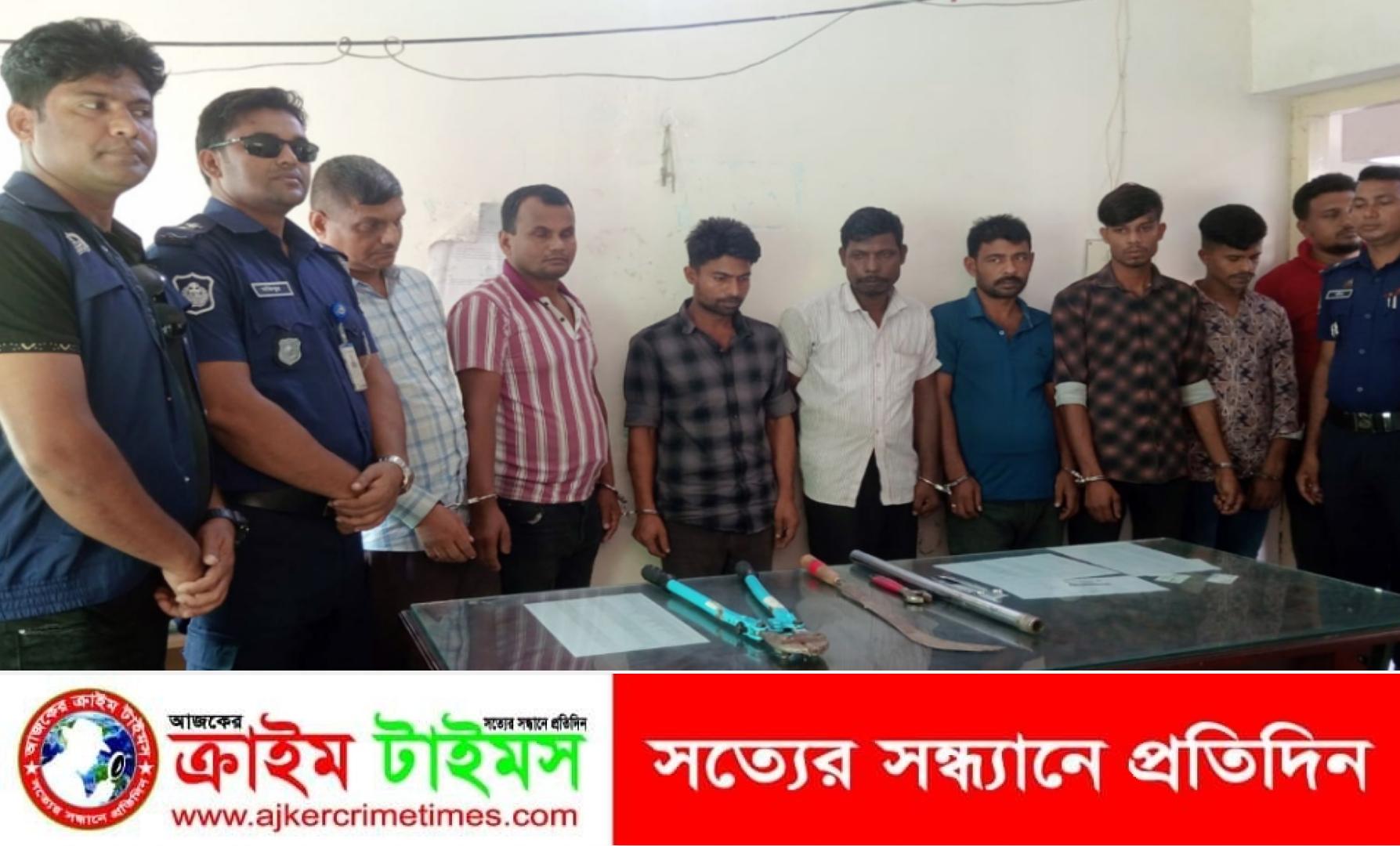 আটককৃতরা হলেন- উপজেলার পূর্ব গরঙ্গল এলাকার মৃত সোনামদ্দিন খানের ছেলে কালাম খান (৪৫), আনোয়ার বেপারীর ছেলে আকাশ বেপারী (২৫), নাজিরপুর শংকরপাশা গ্রামের সামসুল হক ফকিরের ছেলে উজ্জ্বল ফকির (৩৫), কুতুবপুর গ্রামের মৃত ইউনুস খানের ছেলে ফয়সাল খান (২৭), ব্রাহ্মণবাড়িয়া জেলার নবীনগর থানার সেমন্তঘর এলাকার জহর হকের ছেলে রুবেল মিয়া (২৬), উজিরপুর উপজেলার কালিহাতা গ্রামের মৃত শরীফ আলীর ছেলে সাইফুল ইসলাম (৩৫) ও নথুল্লাবাদ এলাকার মৃত ছলেমান খার ছেলে টিপু খা ওরফে টুকু (৪০)।