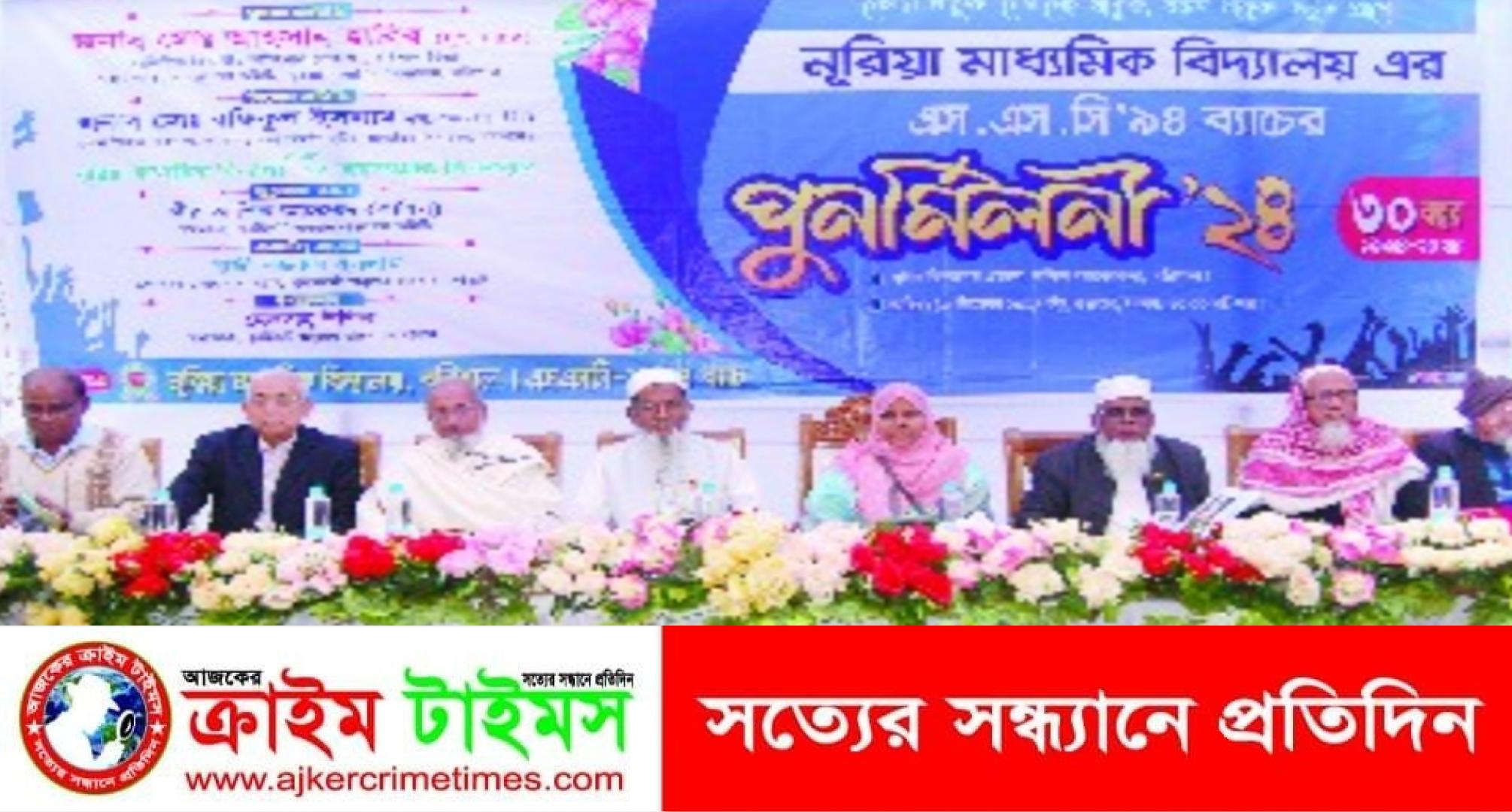 স্টাফ রিপোর্টার :: বরিশাল নগরীর ঐতিহ্যবাহী নূরিয়া মাধ্যমিক বিদ্যালয়ের এসএসসি -৯৪ ব্যাচ’র পুনর্মিলনী অনুষ্ঠিত।