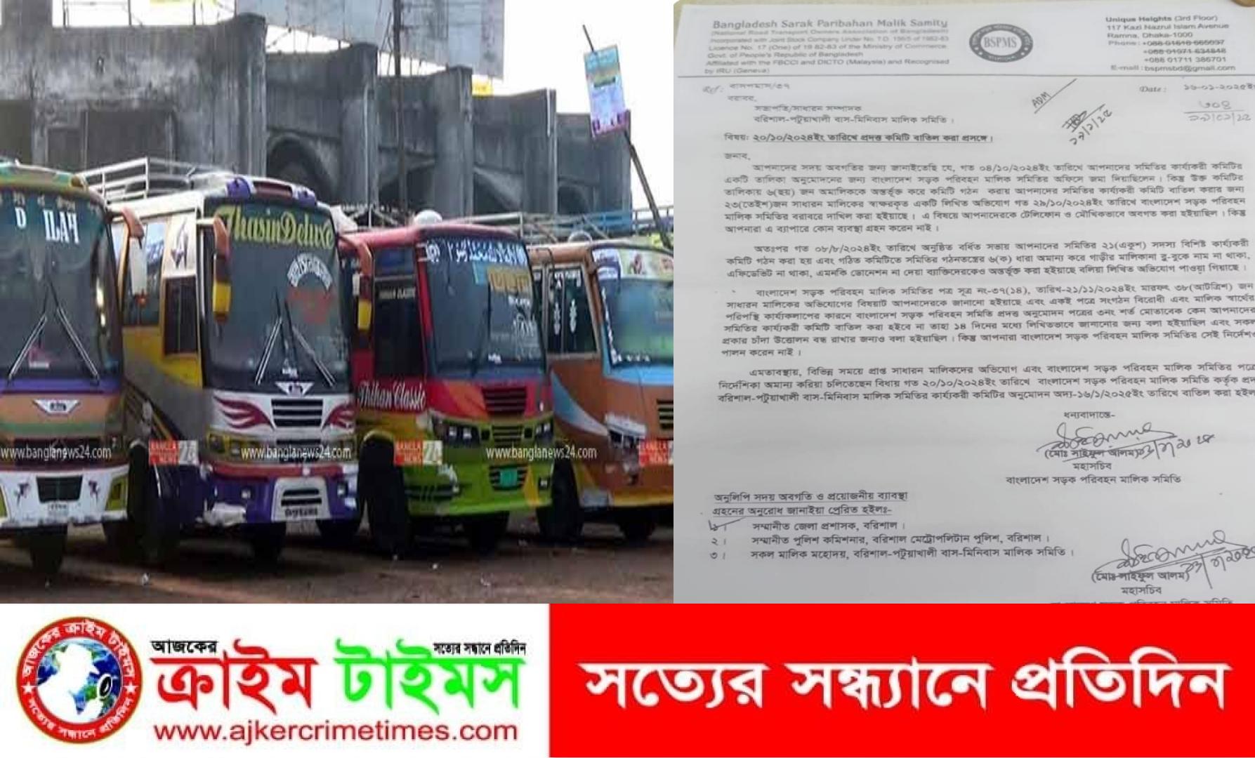 নিজস্ব প্রতিবেদক :: বরিশাল রুপাতলি মিনিবাস মালিক সমিতির কমিটি বিলুপ্ত ঘোষনা।