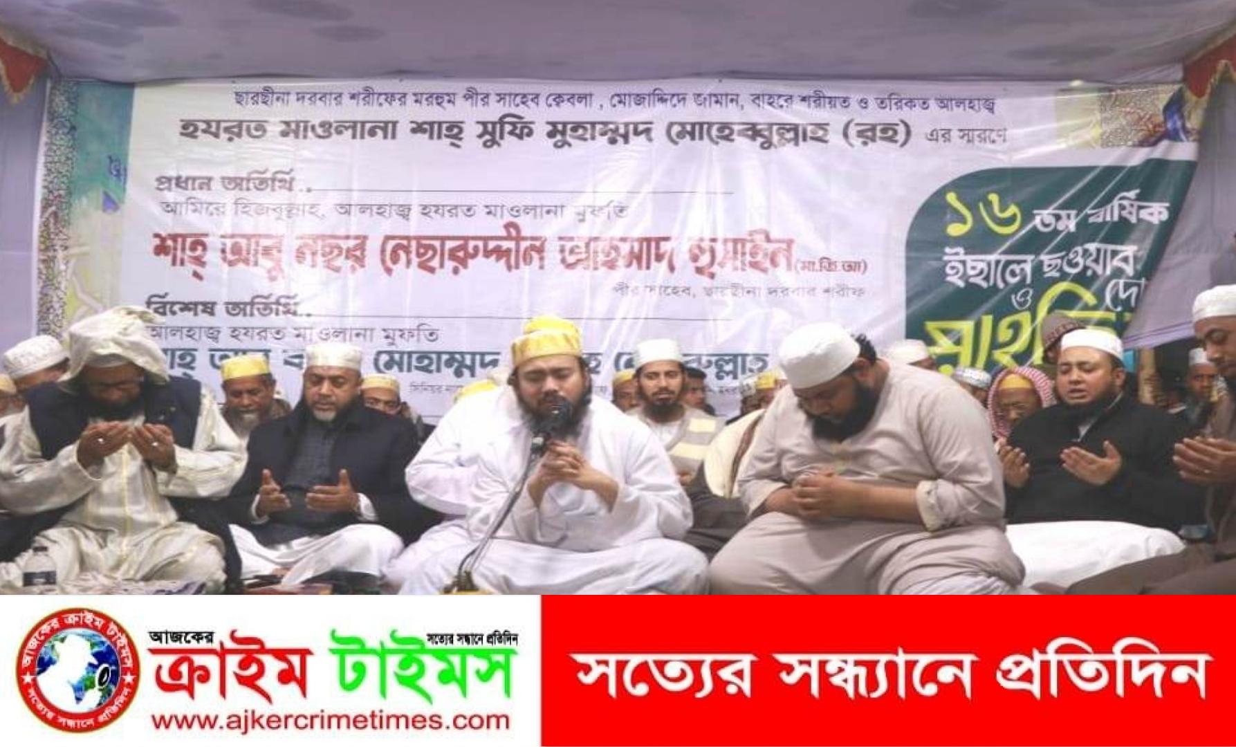 গতকাল বরিশাল মহানগরীর রূপাতলী হযরত মাওলানা মির্জা এনায়েতুর রহমান দীনিয়া কমপ্লেক্স ময়দানে ছারছীনা শরীফের মরহুম পীর ছাহেব কেবলা বাহরে শরীয়ত, মুজাদ্দিদে যামান, কুতুবুল আলম আলহাজ্ব হযরত মাওলানা শাহ্ মোহাম্মদ মোহেব্বুল্লাহ (রহঃ) -এর স্মরণে দুইদিনব্যাপী ঈছালে ছওয়াব ওয়াজ মাহফিলের শেষ দিন প্রধান অতিথির আলোচনায় হযরত পীর ছাহেব কেবলা একথা বলেন।