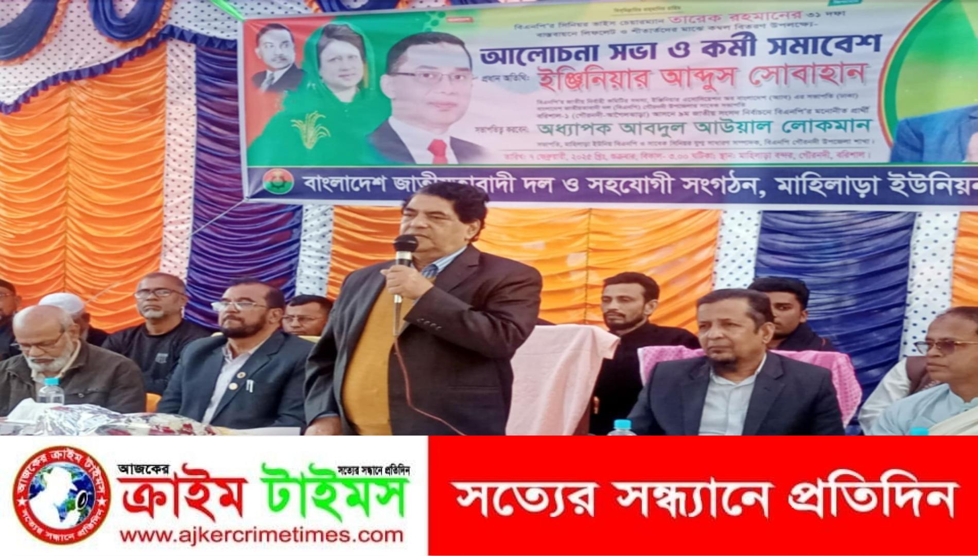 বরিশালের গৌরনদী উপজেলার মাহিলাড়া ইউনিয়ন বিএনপি ও অঙ্গসংগঠনের আয়োজনে শুক্রবার সন্ধ্যায় মাহিলাড়া বাজারে তারেক রহমানের ঘোষিত রাষ্ট্র মেরামতের ৩১ দফার লিফলেট বিতরণ এবং শীতার্তদের মাঝে কম্বল প্রদান উপলক্ষে আয়োজিত আলোচনা সভা ও কর্মী সমাবেশে প্রধান অতিথির বক্তব্যে তিনি আরও বলেন, বিএনপি ক্ষমতা দখলের রাজনীতি করে না, বরং জনগণের ভোটাধিকার, মানবিক মর্যাদা এবং ন্যায়বিচার প্রতিষ্ঠার লক্ষ্যে কাজ করে যাচ্ছে। কর্মী সভায় তিনি বিএনপির সর্বস্তরের নেতাকর্মী ও সমর্থকদের ঐক্যবদ্ধ থাকার আহ্বান জানান।