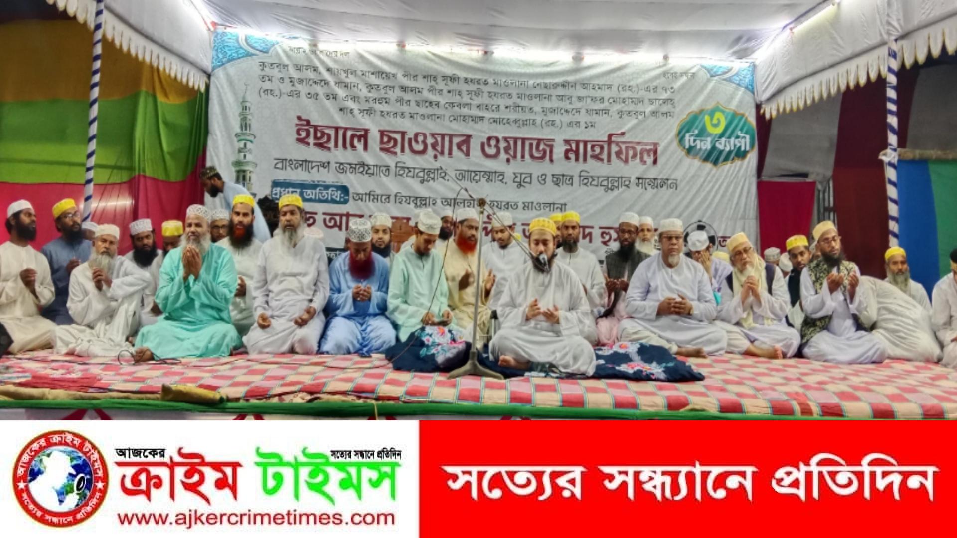 আজ বাদ জুময়া হযরত পীর ছাহেব কেবলা দেশ, জাতি ও মুসলিম উম্মাহর সার্বিক কল্যাণ ও শান্তি কামনা করে ও বিশেষ করে এলাকার মুর্দেগাণদের রূহের মাগফিরাত কামনা করে তিনদিনব্যাপী মাহফিলের আখেরী মুনাজাত পরিচালনা করবেন ইনশাআল্লাহ।