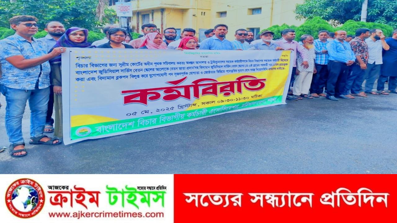 নিজস্ব প্রতিবেদক :: বরিশালে দুই ঘণ্টাব্যাপী কর্মবিরতি পালন করেছে বাংলাদেশ বিচার বিভাগীয় কর্মচারী এসোসিয়েশনের নেতৃবৃন্দ।