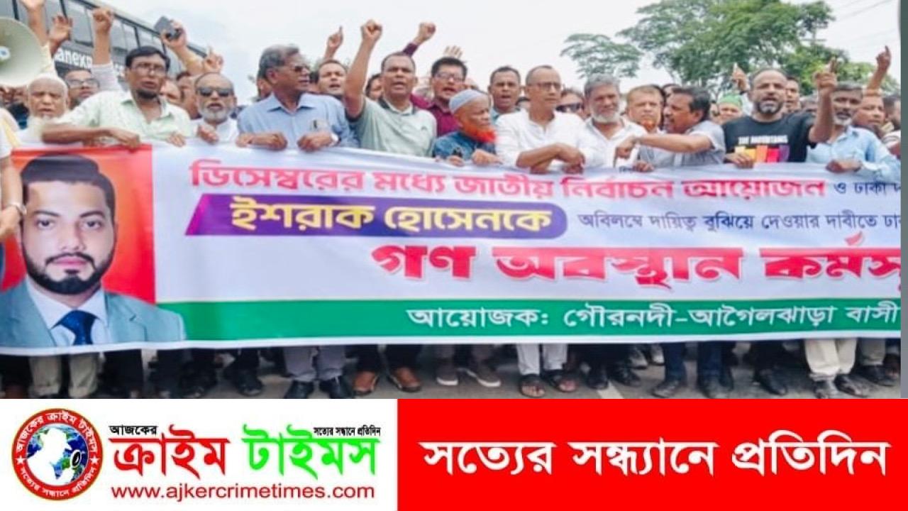 নিজস্ব প্রতিবেদক:::ডিসেম্বরের মধ্যে জাতীয় সংসদ নির্বাচন ও ঢাকা (দক্ষিণ) সিটি কর্পোরেশনের নির্বাচিত মেয়র ইঞ্জিনিয়ার ইশরাক হোসেনকে দায়িত্ব বুঝিয়ে দেয়ার দাবিতে বৃহস্পতিবার সকালে বরিশালের গৌরনদীতে স্থানীয় বিএনপি এবং এর সকল অঙ্গ ও সহযোগী সংগঠনের উদ্যোগে গণঅবস্থান কর্মসূচী পালিত হয়েছে।