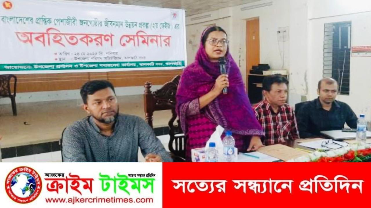 নিজস্ব প্রতিবেদক :: ঝালকাঠি সদর উপজেলায় “প্রান্তিক পেশাজীবী জনগোষ্ঠীর জীবনমান উন্নয়ন প্রকল্প (২য় ফেইজ)”এর অবহিতকরণ সেমিনার অনুষ্ঠিত হয়েছে।