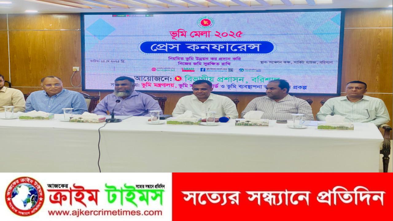 নিউজ ডেস্ক :: নিয়মিত ভূমি উন্নয়ন কর প্রদান করি, নিজের জমি সুরক্ষিত রাখি’ প্রতিপাদ্যে ভূমি মেলা উপলক্ষে সংবাদ সম্মেলন বরিশাল বিভাগীয় প্রশাসনের আয়োজনে গতকাল শনিবার সার্কিট হাউজের সম্মেলনকক্ষে অনুষ্ঠিত হয়। সংবাদ সম্মেলনে সভাপতিত্ব করেন অতিরিক্ত বিভাগীয় কমিশনার সোহরাব হোসেন।