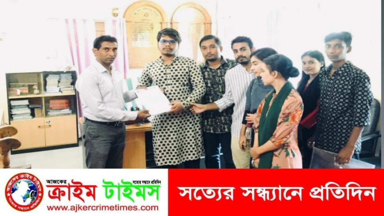 স্মারকলিপি প্রদানকালে উপস্থিত ছিলেন সংগঠনের জেলা সভাপতি সাকিবুল ইসলাম সাফিন, সাধারণ সম্পাদক রাইদুল ইসলাম সাকিব, সাংগঠনিক সম্পাদক জান্নাত নিপু, অর্থ সম্পাদক পায়েল আক্তার, সদস্য ইশান ইসলাম প্রমুখসহ অন্যান্য নেতৃবৃন্দ।