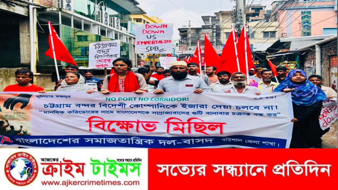 নিজস্ব প্রতিবেদক :: আজ ২০ জুন সকাল ১১ টায় বাংলাদেশের সমাজতান্ত্রিক দল-বাসদ বরিশাল জেলা শাখার উদ্যোগে চট্রগ্রাম বন্দর বিদেশি কোম্পানিকে ইজারা দেয়ার পরিকল্পনা বাতিল ও মানবিক করিডোরের নামে বাংলাদেশকে সাম্রাজ্যবাদের গুটি বানাবার চক্রান্ত বন্ধের দাবিতে বাসদের বিক্ষোভ সমাবেশ ও মিছিল অনুষ্ঠিত হয়। বিক্ষোভ সমাবেশে সভাপতিত্ব করেন বাংলাদেশের সমাজতান্ত্রিক দল-বাসদ বরিশাল জেলার সমন্বয়ক ডা. মনীষা চক্রবর্ত্তী।