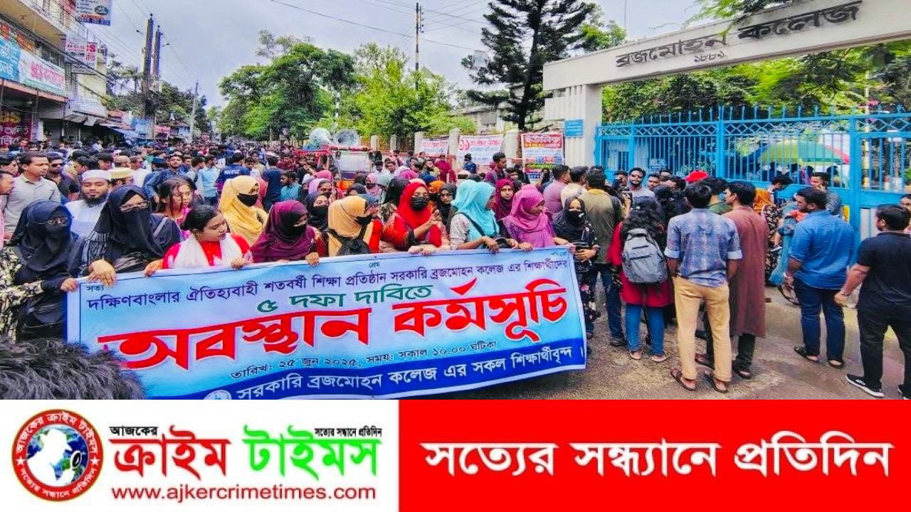 শিক্ষার্থীদের ব্যানারে লেখা ছিল, "দক্ষিণবঙ্গের ঐতিহ্যবাহী শতবর্ষী শিক্ষা প্রতিষ্ঠান সরকারি ব্রজমোহন কলেজের শিক্ষার্থীদের ৫ দফা দাবিতে অবস্থান কর্মসূচি"।