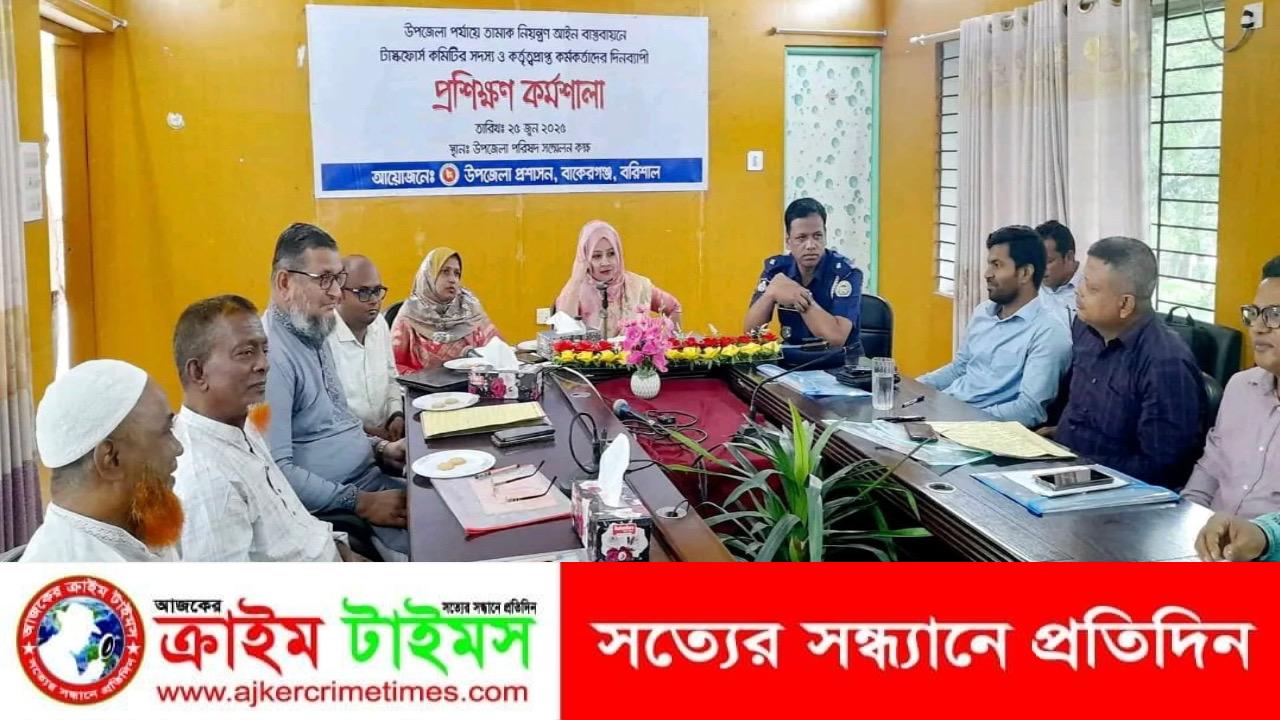 ২৫ জুন (বুধবার) সকাল ১০ টায় উপজেলা সম্মেলন কক্ষে উপজেলা প্রশাসনের আয়োজনে ও জাতীয় তামাক নিয়ন্ত্রণ সেল,স্বাস্থ্য সেবা বিভাগ, স্বাস্থ্য এবং পরিবার কল্যাণ মন্ত্রণালয়ের সহযোগিতায় প্রশিক্ষণ কর্মশালা অনুষ্ঠিত হয়েছে। উপজেলা নির্বাহী কর্মকর্তা রুমানা আফরোজের সভাপতিত্বে বিশেষ অতিথি হিসেবে উপস্থিত ছিলেন, সহকারী কমিশনার (ভূমি) তন্ময় হালদার, উপজেলা স্বাস্থ্য ও পরিবার পরিকল্পনা কর্মকর্তা ডা: সুমি আক্তার, বাকেরগঞ্জ থানার ওসি তদন্ত সুরেজিত বড়ুয়া , উপজেলা শিক্ষা অফিসার শহিদুল ইসলাম সহ বিভিন্ন দপ্তরের কর্মকর্তা, ইউনিয়ন পরিষদের চেয়ারম্যান, সাংবাদিক উপস্থিত ছিলেন।