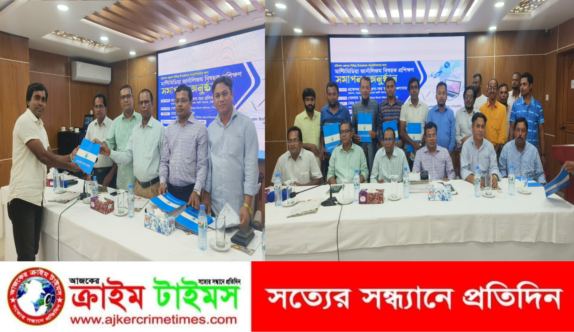 জেলার ৮ উপজেলার উপজেলায় কর্মরত সাংবাদিকদের পেশাগত দক্ষতা বৃদ্ধি ও মান উন্নয়নের লক্ষ্যে প্রেস ইনস্টিটিউট অব বাংলাদেশ (পিআইবি) কর্তৃপক্ষ তিন দিনের ওই প্রশিক্ষণ কর্মশালা শেষে আলোচনা সভা ও সনদ বিতরণে বরিশাল টেলিভিশন মিডিয়া অ্যাসোসিয়েশনের সভাপতি মোঃ হুমায়ুন কবির এর সভাপতিত্বে