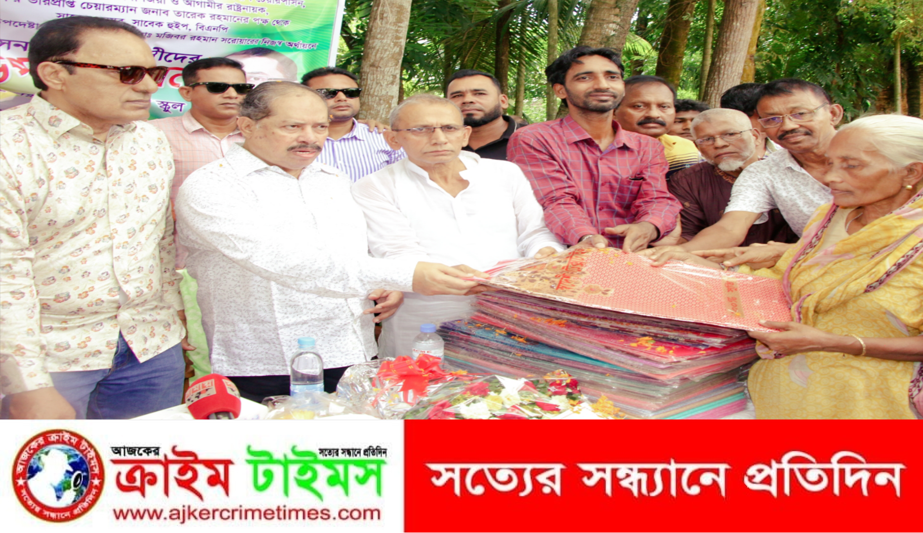 বিএনপির চেয়ারপারসন বেগম খালেদা জিয়ার উপদেষ্টা এ্যাড. মজিবর রহমান সরোয়ারের নিজস্ব অর্থায়নে এ উপহার বিতরণ করা হয়। এসময় পাঁচ শতাধিক হিন্দু ধর্মাবলম্বীর হাতে শাড়ি তুলে দেন তিনি।