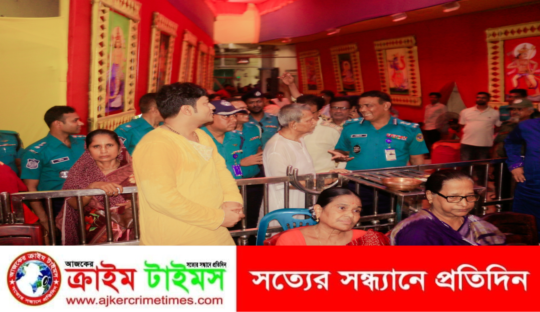 হিন্দু ধর্মাবলম্বীদের প্রধান ধর্মীয় উৎসব শারদীয় দুর্গাপূজা শান্তিপূর্ণ ও উৎসবমুখর পরিবেশে উদযাপন নিশ্চিতকল্পে গতকাল মঙ্গলবার বেলা সাড়ে ১১টায় মহানগরীর এয়ারপোর্ট থানা, কোতোয়ালি মডেল থানা ও কাউনিয়া থানাধীন বিভিন্ন পূজামন্ডপের সার্বিক নিরাপত্তা ব্যবস্থা পরিদর্শন করেন মেট্রোপলিটন পুলিশের কমিশনার শফিকুল ইসলাম।