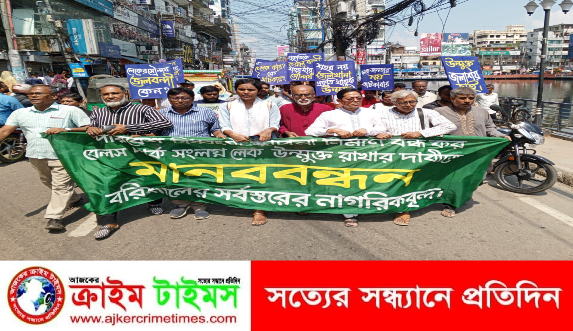 নিজস্ব প্রতিবেদক :: প্রাকৃতিক সৌন্দর্যে ঘেরা বরিশালের প্রাণ বেলস পার্কসংলগ্ন লেক। শহরের একমাত্র উন্মুক্ত এ জলাশয় ঘিরে দেয়াল নির্মাণের প্রতিবাদে বিক্ষোভ মিছিল ও মানববন্ধন করা হয়েছে। মঙ্গলবার (৩০ সেপ্টেম্বর) সকাল ১১টায় শহরের অশ্বিনী কুমার হলের সামনে বরিশালের সর্বস্তরের নাগরিকের ব্যানারে এ কর্মসূচি পালন করা হয়। সংগঠক সুজন আহমেদের পরিচালনায় মানববন্ধনে বিভিন্ন রাজনৈতিক, সামাজিক ও সাংস্কৃতিক সংগঠনের নেতারা বক্তব্য দেন। মানববন্ধনে বক্তব্য দেন বরিশাল জেলা (দক্ষিণ) বিএনপির সদস্যসচিব অ্যাড. আবুল কালাম শাহিন, নজরুল ইসলাম খান রাজন, বরিশাল প্রেস ক্লাবের সভাপতি অধ্যাপক আমিনুল ইসলাম খশরু, বিপ্লবী কমিউনিস্ট লীগের কেন্দ্রীয় নেতা মুক্তিযোদ্ধা আব্দুস সাত্তার, গণফোরামের প্রেসিডিয়াম সদস্য অ্যাড. হিরন কুমার দাস মিঠু, সিপিবি বরিশাল জেলা সাধারণ সম্পাদক অধ্যাপক দুলাল মজুমদার, বাসদ বরিশাল জেলা সমন্বয়ক ডা. মনীষা চক্রবর্তী, নাগরিক সমাজের আহ্বায়ক কাজী মিজানুর রহমান, বরিশাল বিশ্ববিদ্যালয়ের শিক্ষক উন্মেষ রায়, উন্নয়ন সংগঠক দিপু হাফিজুর রহমান, গণসংহতি আন্দোলনের মারুফ আহমেদ, ছাত্র ফেডারেশনের রাইদুল ইসলাম, সমাজতান্ত্রিক ছাত্র ফ্রন্টের ফারজানা আক্তার, ডিবেট সংগঠক তাসমিয়া জান্নাত মেঘা প্রমুখ। বক্তারা বলেন, অসামাজিক কার্যকলাপ বা মাদক সেবনের অজুহাতে লেকের চারপাশে দেয়াল নির্মাণ করা হচ্ছে। অথচ এ ধরনের সমস্যা সমাধানে নিরাপত্তা বাড়ানো, সিসিটিভি ক্যামেরা ও লাইটপোস্ট বসানোই কার্যকর উপায় হতে পারত। দেয়াল দিয়ে লেক ঘিরে ফেলা জনস্বার্থবিরোধী সিদ্ধান্ত। বক্তারা অভিযোগ করেন, জেলা প্রশাসক জনমত উপেক্ষা করে স্বেচ্ছাচারী আচরণ করছেন। এমনকি প্রতিবাদ জানানোর কারণে সংগঠক ডা. মনীষা চক্রবর্তীর বাবার চেম্বারের সরকারি লিজ বাতিলের হুমকিও দিয়েছেন তিনি। বক্তারা অবিলম্বে দেয়াল নির্মাণ বন্ধ করে লেককে আগের অবস্থায় ফিরিয়ে দেওয়ার দাবি জানান।
