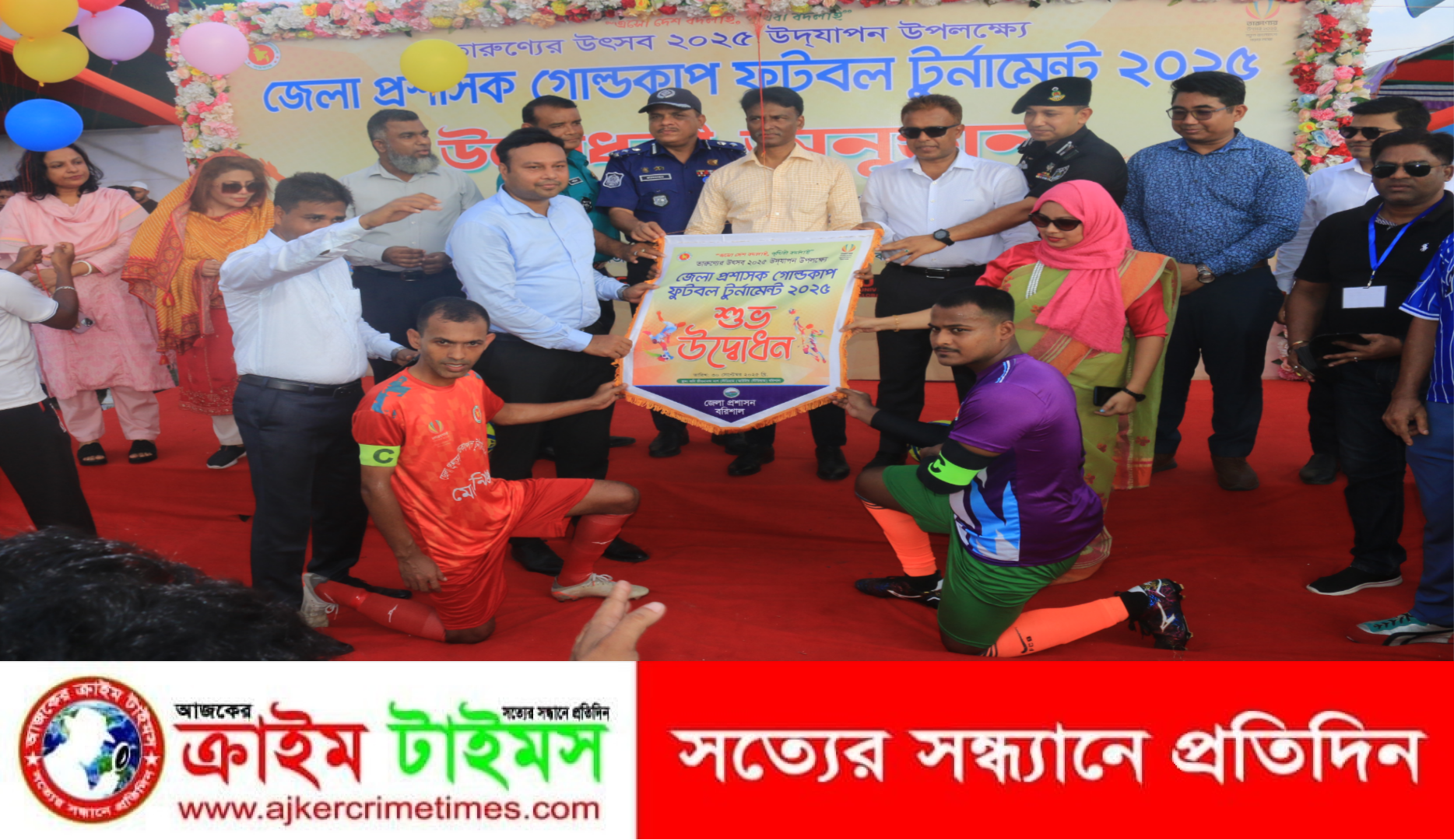 এসো দেশ বদলাই, পৃথিবী বদলাই এই স্লোগান নিয়ে তারুণ্যের উৎসব উদযাপন উপলক্ষ্যে বহু আকাঙ্ক্ষিত জেলা প্রশাসক গোল্ডকাপ ফুটবল টুর্নামেন্ট-২০২৫ এর উদ্বোধনী অনুষ্ঠান অনুষ্ঠিত হয়। আজ ৩০ সেপ্টেম্বর মঙ্গলবার বিকাল ৩ টায় জেলা প্রশাসন বরিশাল এর আয়োজনে করি জীবনানন্দ দাশ স্টেডিয়াম (আউটার স্টেডিয়াম) বরিশালে অনুষ্ঠানে প্রধান অতিথি ছিলেন বিভাগীয় কমিশনার বরিশাল মোঃ রায়হান কাওছার। অনুষ্ঠানে সভাপতিত্ব করেন জেলা প্রশাসক, বরিশাল মোহাম্মদ দেলোয়ার হোসেন। বিশেষ অতিথি ছিলেন উপ-পুলিশ মহাপরিদর্শক বরিশাল রেঞ্জ বরিশাল মোঃ মঞ্জুর মোর্শেদ আলম, পুলিশ কমিশনার বরিশাল মেট্রোপলিটন পুলিশ মোঃ শফিকুল ইসলাম, পুলিশ সুপার বরিশাল মোঃ শরিফ উদ্দীন, বরিশাল জেলার সকল উপজেলা নির্বাহী কর্মকর্তা রাজনৈতিক নেতৃবৃন্দ খেলোয়াড়বৃন্দরা উপস্থিত ছিলেন। শুরুতে জাতীয় সঙ্গীত পরিবেশনের পাশাপাশি জাতীয় পতাকা উত্তলন করেন প্রধান অতিথিসহ অন্যান্য অতিথিবৃন্দ। পরে সংক্ষিপ্ত এক আলোচনা শেষে অতিথিরা বেলুন ফেস্টুন ও পায়রা উড়িয়ে অনুষ্ঠানের শুভ উদ্বোধন করেন। উদ্বোধন শেষে বাকেরগঞ্জ বনাম মেহেন্দিগঞ্জ উপজেলার মধ্যকার উদ্বোধনী খেলা দিয়ে জেলা প্রশাসক গোল্ডকাপ ফুটবল টুর্নামেন্ট ২০২৫ এর পর্দা উন্মোচিত হয়। বরিশাল জেলার ১০ টি উপজেলা এবং বরিশাল সিটি কর্পোরেশনসহ মোট ১১টি দল নিয়ে এ টুর্নামেন্ট অনুষ্ঠিত হবে। খেলায় চ্যাম্পিয়ন ১ লক্ষ টাকা ও রানার্স আপ ৫০ হাজার টাকা। বাকেরগঞ্জ বনাম মেহেন্দিগঞ্জ উপজেলার মধ্যকার খেলায় মেহেন্দিগঞ্জ ২-১ গোলে জয়লাভ করেন।