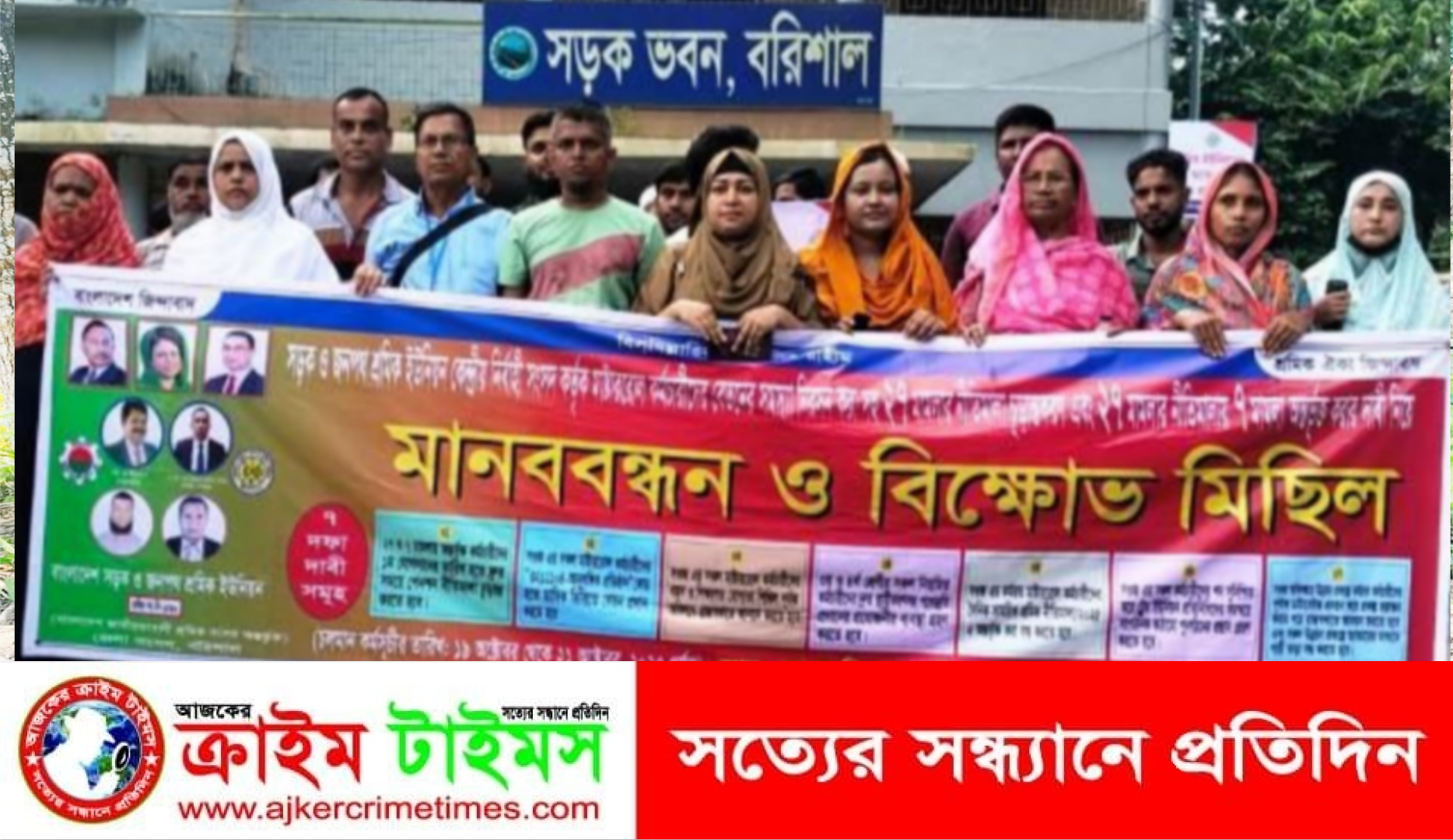 নিজস্ব প্রতিবেদক :: বরিশালে মাস্টার রোল শ্রমিক কর্মচারীদের বেতনের সমস্যা নিরসন করা, ২৭ মামলার নীতিমালা চূড়ান্ত করণসহ ৭ দফা দাবিতে মানববন্ধন ও বিক্ষোভ মিছিল করেছে সড়ক ও জনপথ কর্মচারীরা। মঙ্গলবার বেলা এগারোটার দিকে তারা সড়ক ভবনের জোন কার্যালয়ের সামনে মানববন্ধন ও বিক্ষোভ মিছিল করেন।
