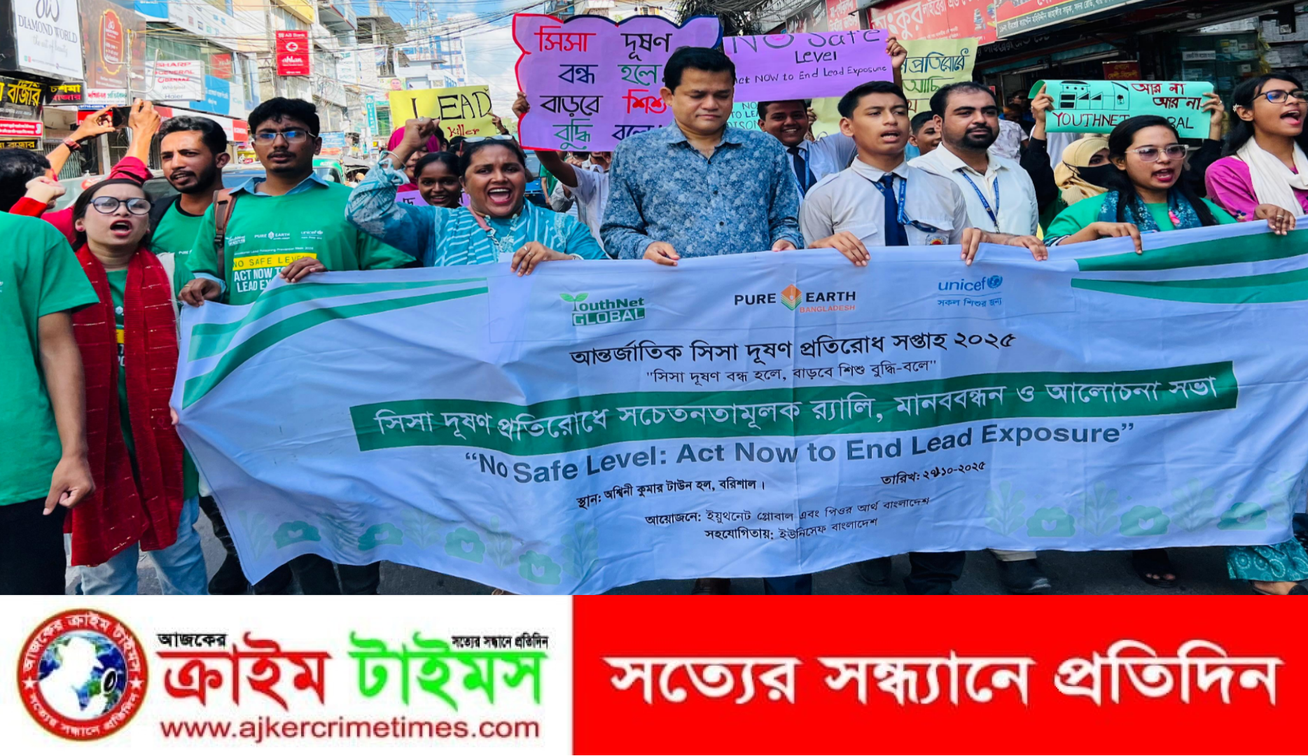 নিজস্ব প্রতিবেদক :: বরিশালে আন্তর্জাতিক সিসা দূষণ প্রতিরোধ সপ্তাহ উপলক্ষ্যে মানববন্ধন-সমাবেশ অনুষ্ঠিত হয়েছে।