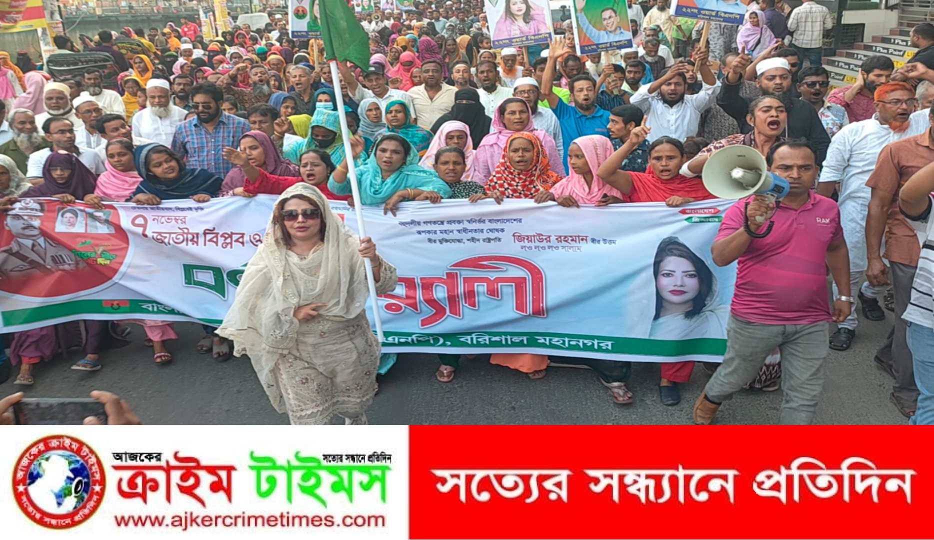 নিজস্ব প্রতিবেদক :: ঐতিহাসিক ৭ নভেম্বর জাতীয় বিপ্লব ও সংহতি দিবস উপলক্ষে বরিশাল মহানগর বিএনপির সিনিয়র যুগ্ম আহবায়ক ও সাবেক সদস্য সচিব (ভারপ্রাপ্ত) আফরোজা খানম নাসরীনের উদ্যেগে নগরীতে বর্ণাঢ্য র্যালি, আলোচনা সভা ও সাংস্কৃতিক অনুষ্ঠান হয়েছে। গতকাল দুপুরে র্যালি অনুষ্ঠিত হয়, পরে নগরের অশ্বিনী কুমার টাউন হলে আলোচনা সভা অনুষ্ঠিত হয়। এতে সভাপতিত্ব করেন বরিশাল মহানগর বিএনপির সিনিয়র যুগ্ম আহবায়ক ও সাবেক সদস্য সচিব (ভারপ্রাপ্ত) আফরোজা খানম নাসরীন। এ সময় ৭ ই নভেম্বরের তাৎপর্য তুলে ধরে বিভিন্ন ওয়ার্ডের নেতৃবৃন্দ, যুবদল, মহিলা দল, ছাত্রদলের নেতাকর্মীরা বক্তব্য রাখেন। এর আগে সকালে শহীদ রাষ্ট্রপতি জিয়াউর রহমানের মাগফেরাত কামনায় দোয়া মোনাজাত অনুষ্ঠিত হয়। আলোচনা সভা শেষে মনোজ্ঞ সাংস্কৃতিক সন্ধ্যা অনুষ্ঠিত হয়।