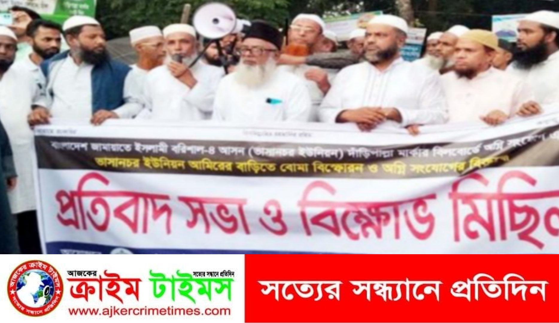 নিজস্ব প্রতিবেদক :: জামায়াতে বরিশাল-৪ আসনের সংসদ সদস্য প্রার্থী অধ্যাপক মাওলানা মোহাম্মদ আবদুল জব্বারের বিলবোর্ডে আগুন ও ভাসানচর ইউনিয়ন আমীর মাওলানা আবদুর রহমান ফারুকের বাড়িতে আগুন ও বোমা নিক্ষেপের প্রতিবাদে বিক্ষোভ মিছিল প্রতিবাদ সভা করছে জামাতে ইসলামীর নেতা কর্মীরা।