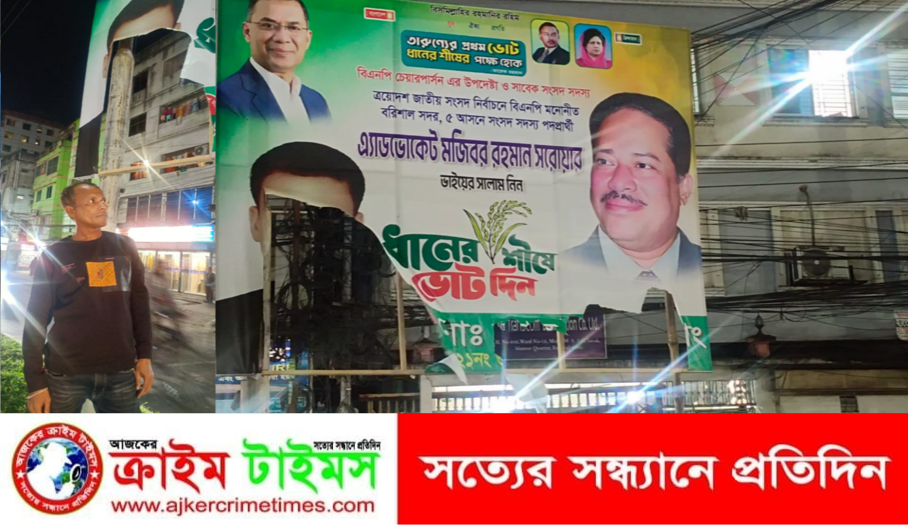 নিজস্ব প্রতিবেদক :: বরিশালে বিএনপির প্রার্থী সরোয়ারের বিলবোর্ড-ব্যানার ছিঁড়ে ফেলল দুর্বৃত্তরা।