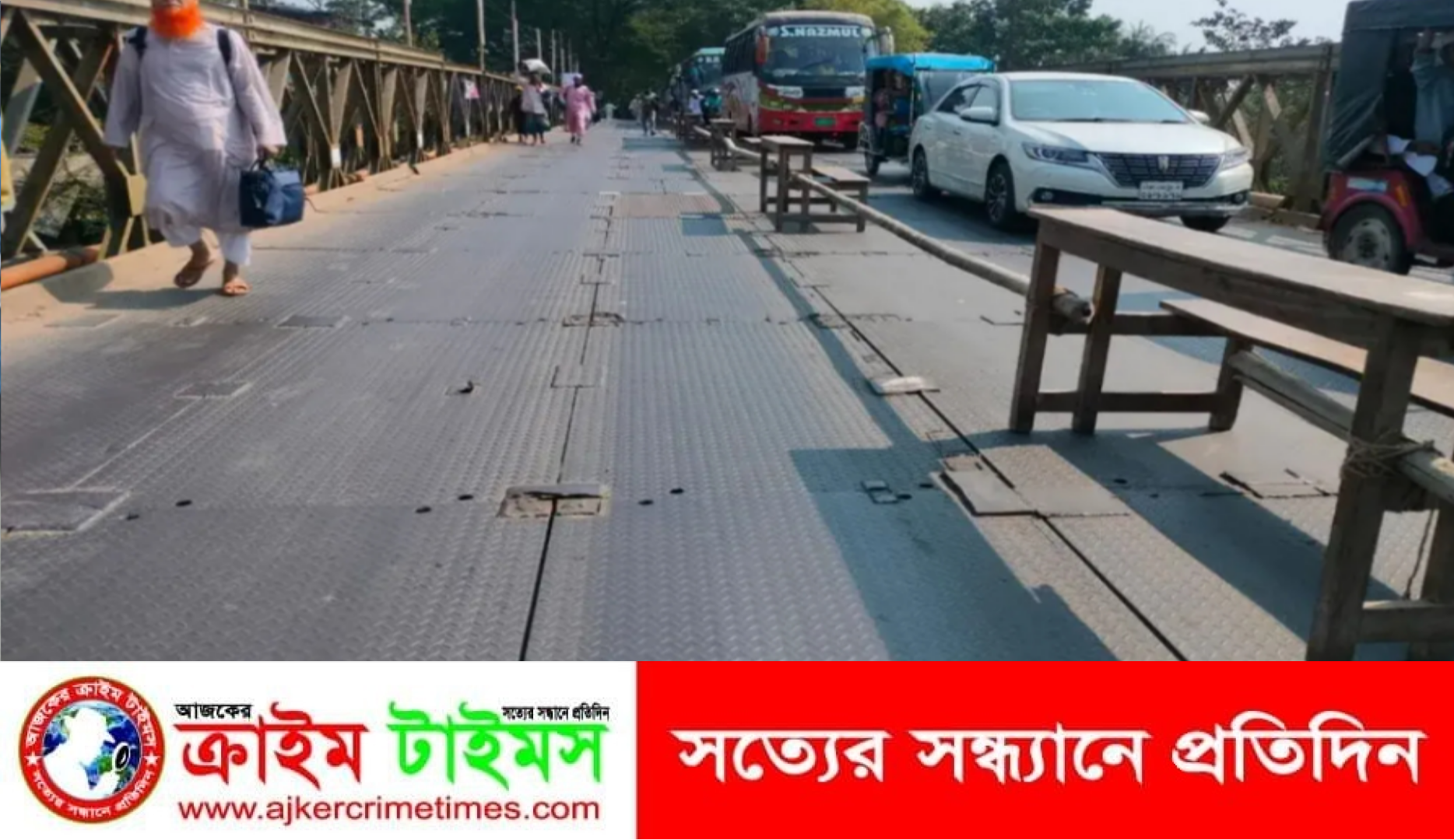নিজস্ব প্রতিবেদক :: ঝালকাঠির বাসন্ডা সেতুতে হাজার জোড়াতালি : ৩-৪ গুণ বেশি ওজন বহনে বড় দুর্ঘটনার শঙ্কা।