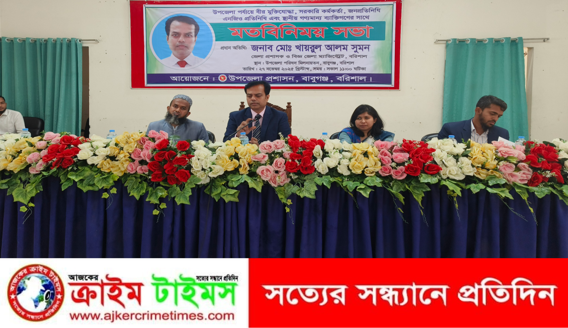 বৃহস্পতিবার (২৭ নভেম্বর ২০২৫) সকাল ১১টায় স্থানীয় উপজেলা পরিষদ মিলনায়তনে অনুষ্ঠিত এই সভায় প্রধান অতিথি হিসেবে উপস্থিত ছিলেন বরিশাল জেলা প্রশাসক ও জেলা ম্যাজিস্ট্রেট মোঃ খায়রুল আলম সুমন।