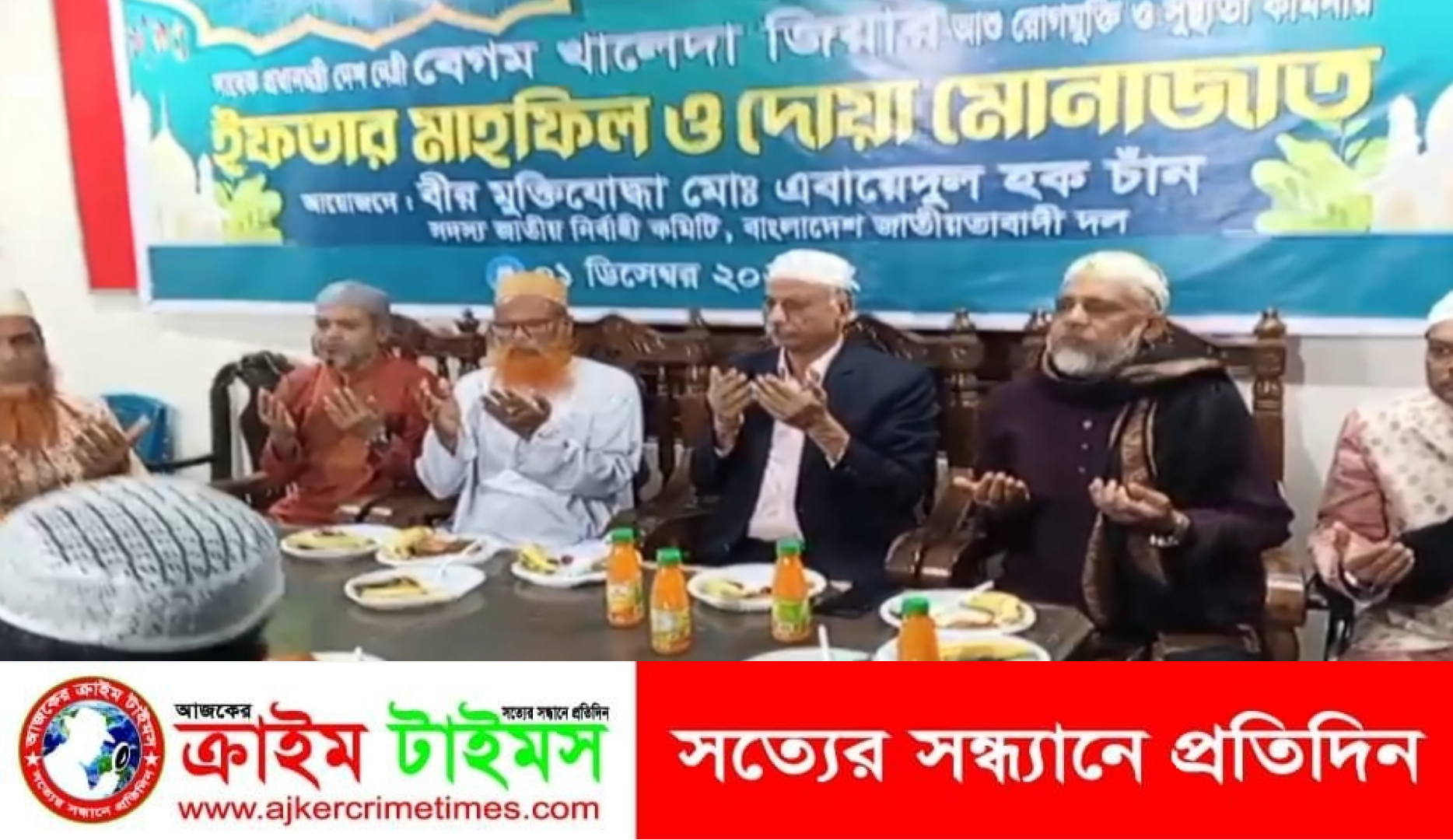 আজ সোমবার এ দোয়া অনুষ্ঠানের আয়োজন করা হয়। এতে বিভিন্ন ওয়ার্ডের স্থানীয় BNP ও অঙ্গসংগঠনের নেতাকর্মীসহ সাধারণ মুসল্লিরা অংশগ্রহণ করেন।