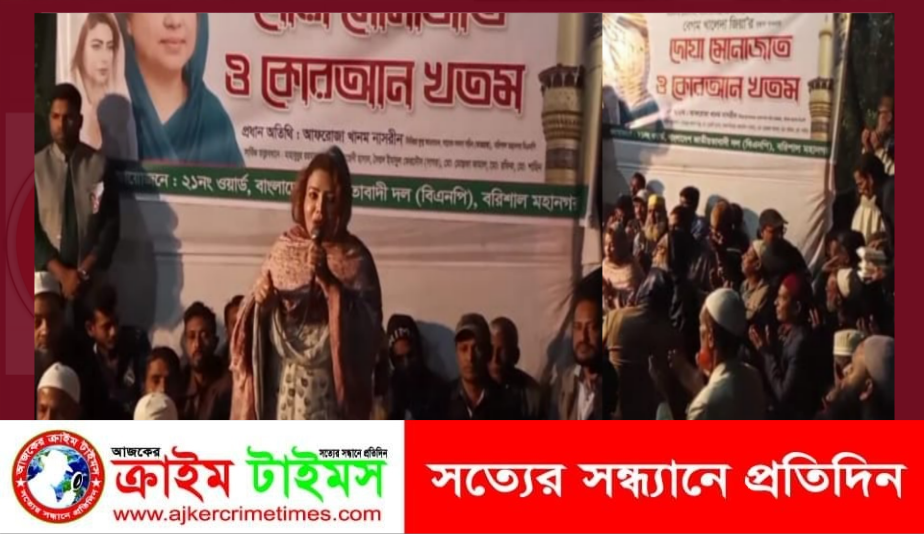 বরিশালে বিএনপি’র উদ্যোগে বেগম খালেদা জিয়ার সুস্থতা কামনায় দোয়া মোনাজাত ও কোরআন খতম