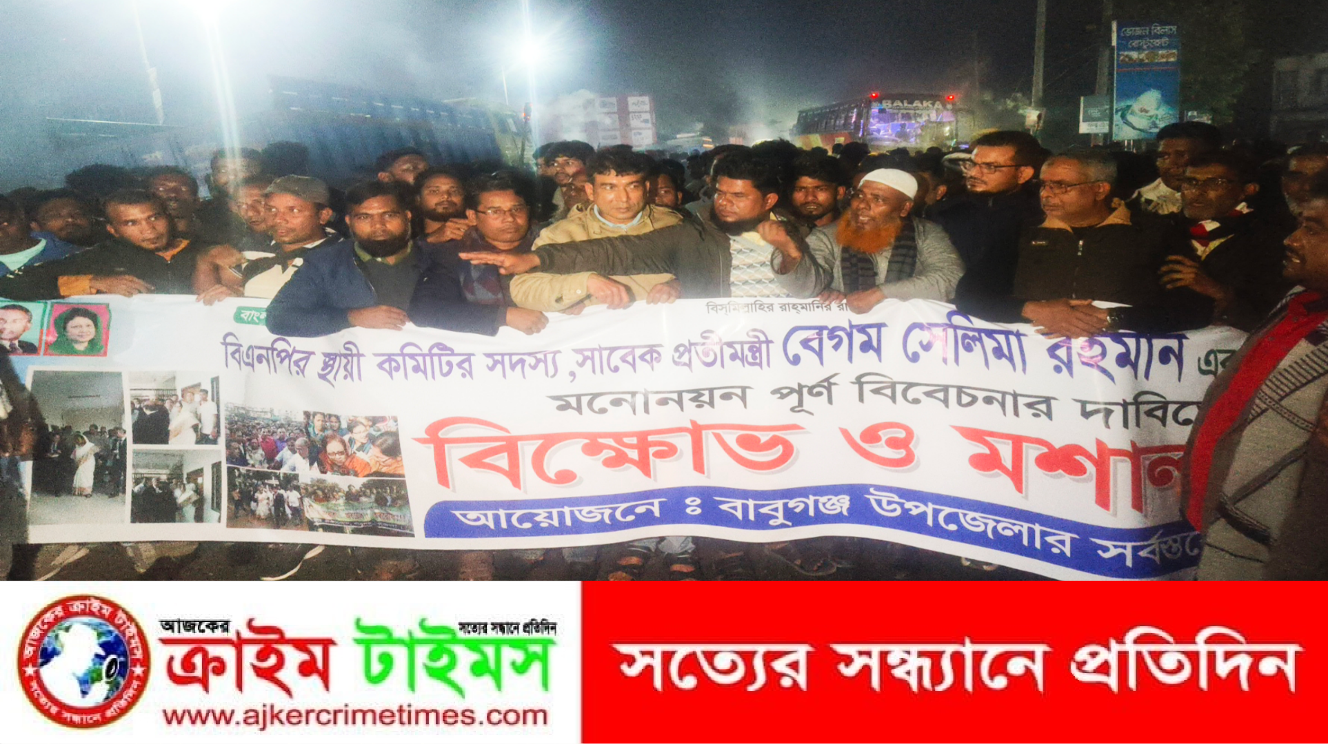 মশাল হাতে নিয়ে বিক্ষোভকারীরা বাবুগঞ্জ