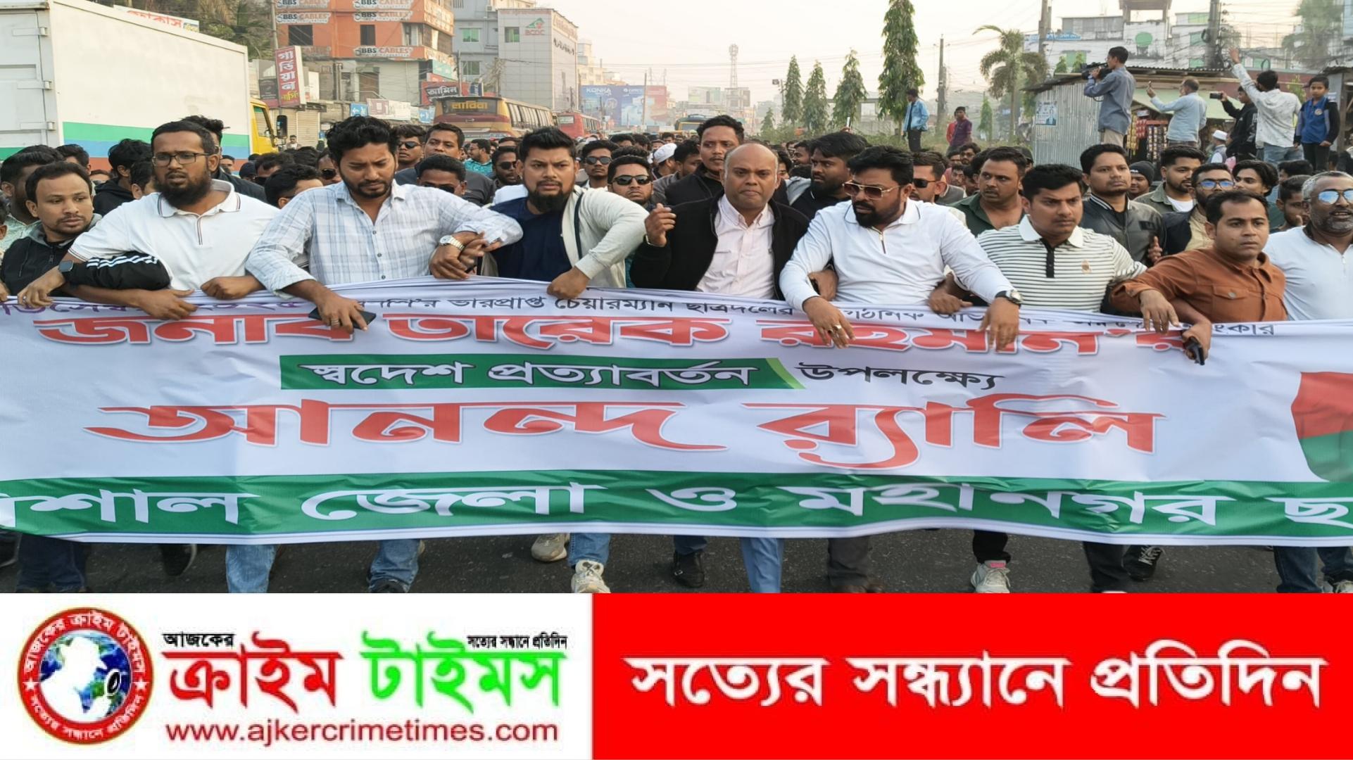 নিজস্ব প্রতিবেদক :: বিএনপির ভারপ্রাপ্ত চেয়ারম্যান তারেক রহমানের আগমন উপলক্ষে নগরীতে আনন্দ মিছিল করেছে জেলা ও মহানগর ছাত্রদল। গতকাল সোমবার বিকেলে নগরীর চৌমাথা লেকপাড় থেকে মিছিলটি বের করা হয়। মিছিলের নেতৃত্বে ছিলেন জেলা ছাত্রদলের সভাপতি মাহফুজ আলম মিঠু, সাধারণ সম্পাদক তৌফিকুর ইসলাম ইমরান, মহানগর ছাত্রদলের সভাপতি রেজাউল করিম রনি, সহ সভাপতি তরিকুল ইসলাম তারেক, জেলা ছাত্রদলের সাবেক ভারপ্রাপ্ত সভাপতি তারেক আল ইমরানসহ অন্যান্যরা।