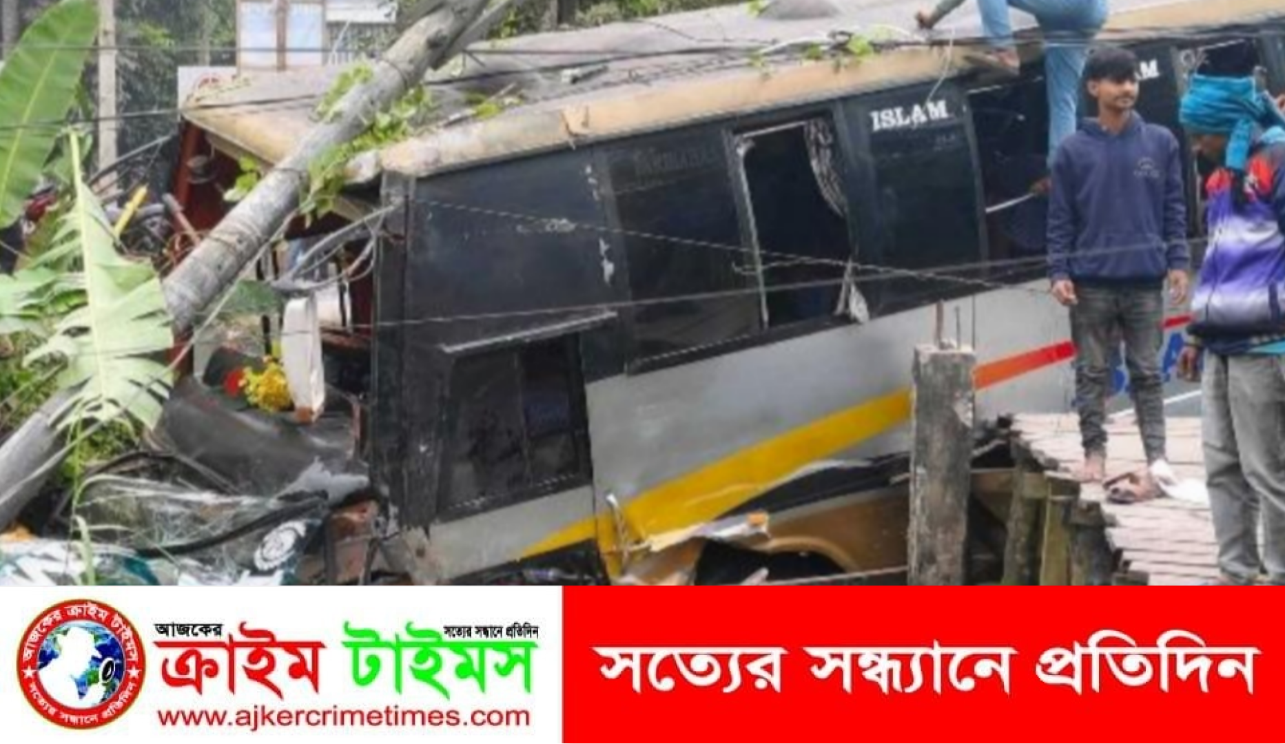 বরিশালে বৈদ্যুতিক খুঁটিতে ধাক্কা লেগে যাত্রীবাহী বাস খাদে, আহত ৪ হাসপাতালে ভর্তি