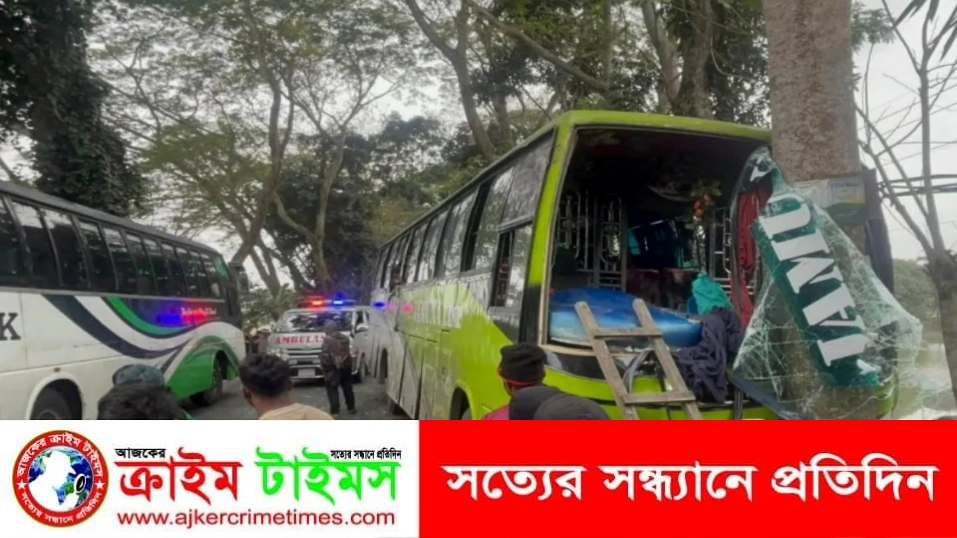 ঢাকা-বরিশাল মহাসড়কে নিয়ন্ত্রণ হারিয়ে গাছের সাথে বাসের ধাক্কায় আহত ১০