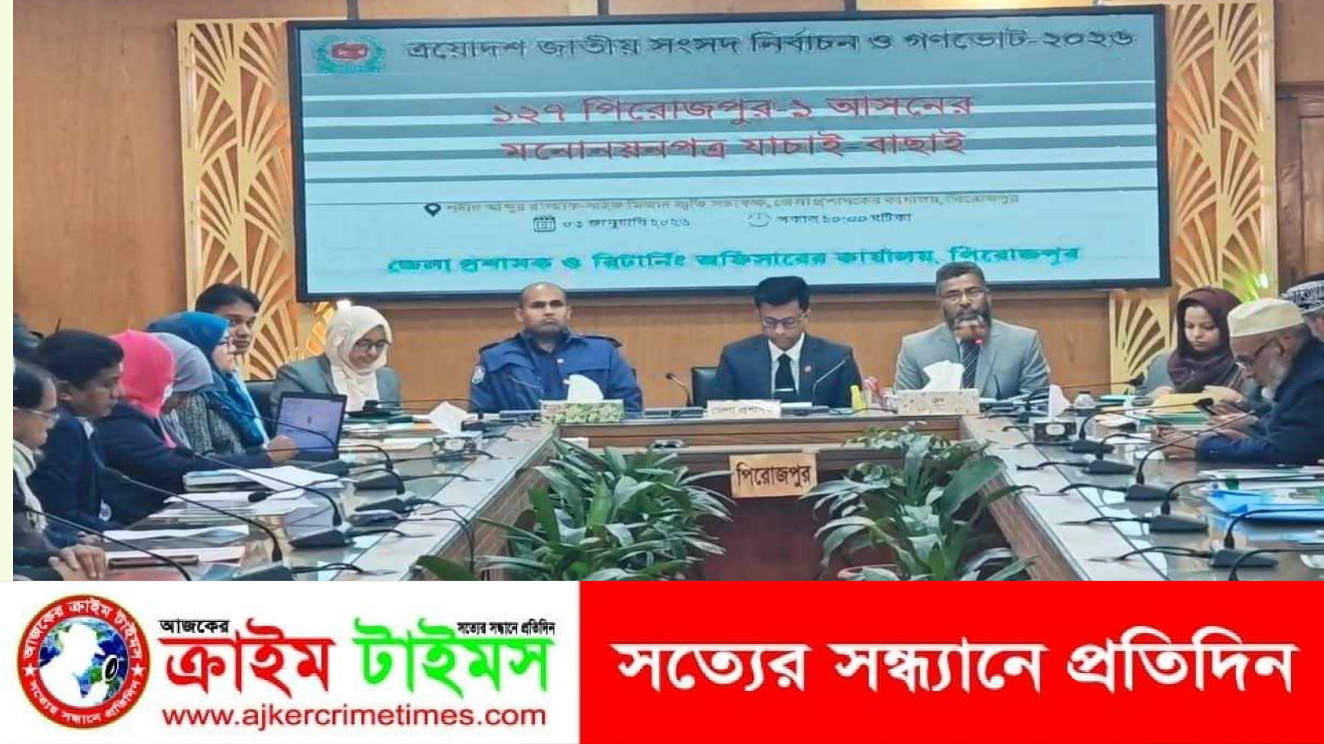 শনিবার (৩ জানুয়ারি) সকাল থেকে পিরোজপুর জেলা প্রশাসকের কার্যালয়ের শহীদ আব্দুর রাজ্জাক সাইফ মিজান স্মৃতি সভাকক্ষে তিনটি সংসদীয় আসনের জন্য পৃথক পৃথক সময়ে মনোনয়নপত্র যাচাই-বাছাই কার্যক্রম অনুষ্ঠিত হয়। যাচাই-বাছাই শেষে বৈধ ও অবৈধ প্রার্থীদের নাম ঘোষণা করা হয়।