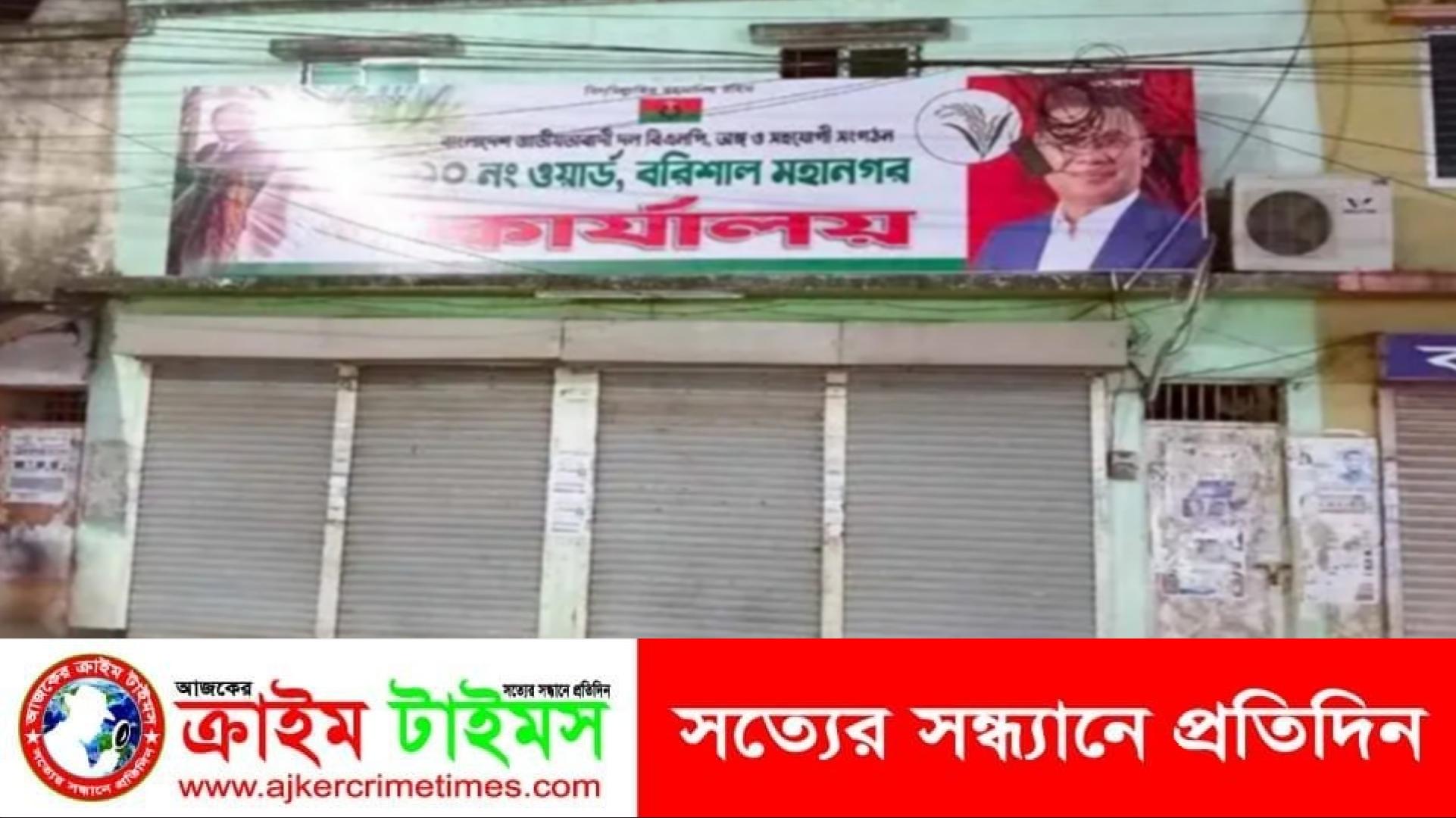 নিজস্ব প্রতিবেদক :: বরিশাল সিটি করপোরেশনের সাবেক এক কাউন্সিলরের অফিস দখল করে কার্যালয় গড়েছেন স্থানীয় বিএনপি নেতাকর্মীরা। মঙ্গলবার (৬ জানুয়ারি) রাতে ওই কার্যালয়ে নেতাকর্মীরা ১০ নম্বর ওয়ার্ড বিএনপির ব্যানার সাঁটিয়ে দেন।