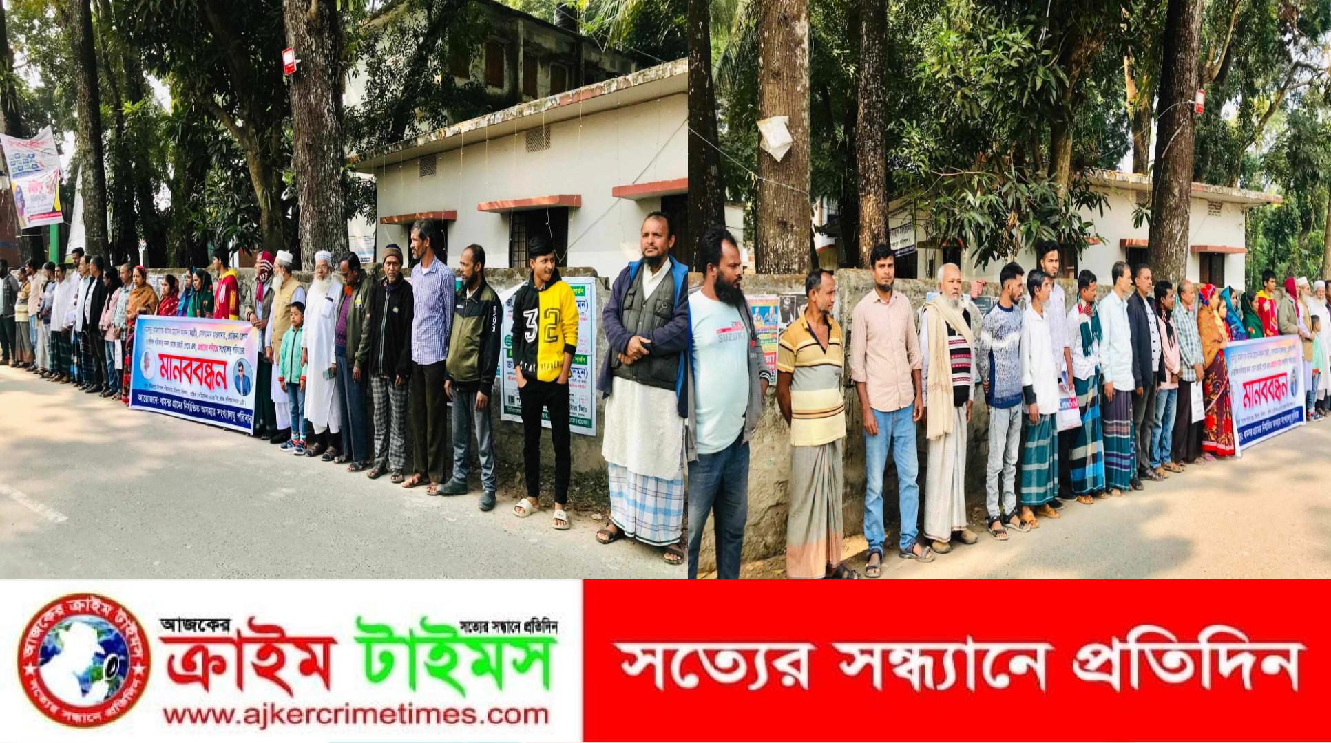 নাজমুল হক মুন্না, উজিরপুর (বরিশাল) :: বরিশালের উজিরপুরে অসহায় দরিদ্র সংখ্যালঘু পরিবারের জমি দখল ও মামলা দিয়ে হয়রানীর প্রতিবাদে মানববন্ধন করেছে ভুক্তভোগী পরিবার। ১৭ ডিসেম্বর রোববার বেলা ১১ টায় উপজেলা পরিষদের সামনে এ মানববন্ধন অনুষ্ঠিত হয়। বামরাইল ইউনিয়নের হস্তিশুন্ড গ্রামের শাসের আলীর ছেলে আমির হোসেন আকন ওরফে আমির মহুরী (৪৫), শিকারপুর ইউনিয়নের মাদার্শী গ্রামের মৃত সেকান্দর আলী হাওলাদারের ছেলে সোলায়মান হাওলাদার (৫৫), ধামসর গ্রামের জলিল খলিফা(৫০) ও বরাকোঠা গ্রামের রোজীনা বেগম (৩৭) এর বিরুদ্ধে ঘন্টা ব্যাপী মানববন্ধনে শতাধিক এলাকাবাসীর উপস্থিতিতে মানববন্ধনে অন্যান্যদের মধ্যে বক্তব্য করেন অসহায় সংখ্যালঘু পরিবারের হিরোলাল হালদার (৫৫), মতিলাল হালদার (৬৫), অর্পনা রানী(৪০), ডালিয়া হালদার(৫০), রোজীনা বেগমের মামলার শিকার তার স্বামী আজিজুল রাড়ী, স্থানীয় বীরমুক্তিযোদ্ধা হাবিবুর রহমান হাওলাদার(৬৫), বীর মুক্তিযোদ্ধা আক্রাম হোসেন হাওলাদার(৭৫) সহ অনেকে। মানব বন্ধনে বক্তারা বলেন, বরিশাল জজকোর্টের মহুরি পরিচয় দানকারী এবং উজিরপুর মডেল থানার সামনে আইনজীবী সহকারী পরিচয় দিয়ে অফিস খুলে প্রকাশ্যে থানার দরখাস্ত লেখার অজুহাতে বিভিন্ন অসহায় পরিবারকে মিথ্যা ও হয়রানী মামলায় জড়িয়ে নি:স্ব করার অভিযোগ উঠেছে আমির মহুরীও তার সহযোগ বিরুদ্ধে । মানববন্ধনে বক্তাদের দাবি, এই সংখ্যালঘু পরিবারের বিরুদ্ধে ৫ মাসে ধর্ষন, চাদাবাজি, ছিনতাই, চুরি, ডাকাতি, মারামারি সহ ২৪ টি মামলায় শতাধিক ব্যক্তির বিরুদ্ধে মামলা ও অভিযোগ দিয়ে হয়রানী করে চলছে। শুধু তাই নয় অসহায় পরিবারের বিরুদ্ধে বানারীপাড়া উপজেলার বিশারকান্দী গ্রামের শাহাবুদ্দিন বেপারীকে দিয়ে চাঁদাবাজি এবং বাকেরগঞ্জ থানার নেয়ামতি গ্রামের ঝুমুর হালদার কে দিয়ে ধর্ষণ মামলা,নিয়ামতি এলাকার অমল সরকারকে দিয়ে অর্থআত্মসাৎ সহ বিভিন্ন নামে বেনামে একেরপর এর মিথ্যা ও ভিত্তিহীন মামলা দায়ের করেছে। প্রকৃত পক্ষে এ সকল বাদীদের কোনো হদিস পাওয়া যাবে না। আর এ সকল বিরোধের মুলে হচ্ছে উপজেলার বামরাইল ইউনিয়নের ৬৭ নং ধামসর মৌজার ৪০৯ নং খতিয়ানের মাত্র ৬৬ শতাংশ জমি। আর এই জমি দখলের মিশনে নেমেছে আমির হোসেন আকন ওরফে আমির মহুরী, পুস্পরানী, ভবতোষ বেপারী, রেপতি রানী, সোলায়মান হাওলাদার, জলিল খলিফা ও রোজীনা বেগম সহ বিভিন্ন ব্যাক্তিদের দিয়ে জোর পুর্বক জমি দখলের চেষ্টা চালায়। এছাড়াও বরাকোঠা গ্রামের আজিজুল রাড়ীর বিরুদ্ধে তার স্ত্রী রোজীনা বেগমকে দিয়ে ৪টি মামলা ও বিভিন্ন দপ্তরে একাধিক অভিযোগ দায়ের করেন প্রতারক আমির মহুরী। তাদের এ অত্যাচার থেকে রেহাই পেতে আইন শৃঙ্খলা বাহিনী সহ প্রসাশনের উর্ধতন কর্তৃপক্ষের সু দৃষ্